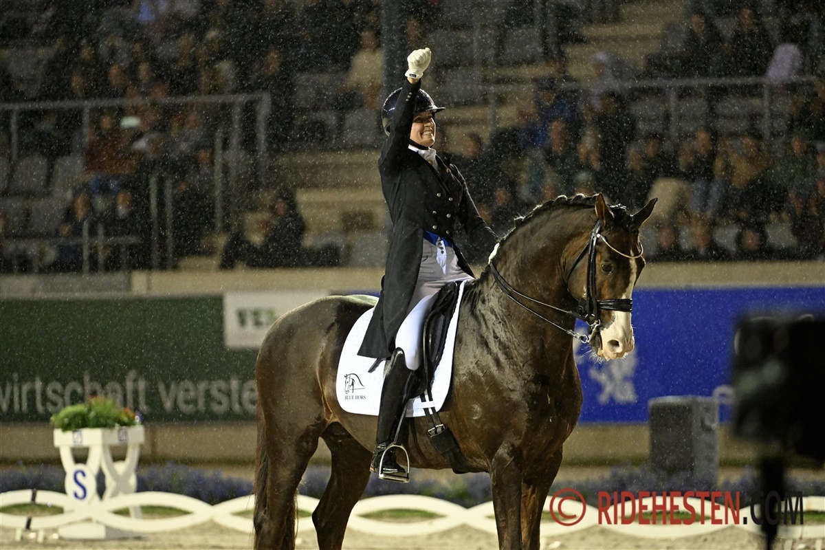 Dermed lå Nanna og Don O i spidsen af küren indtil klassens sidste rytter red på banen. Dressurdronningen Isabell Werth havde dog ingen planer om at lade sejren gå til en dansk rytter og Werth gjorde som hun gør bedst - red et brag af en kür på 17-årige Emilio 107 e. Ehrenpreis/Cacir AA. Publikum begyndte at klappe tidligt og det betyd at det måtte fortsætte hele den sidste midterlinje. Med 84,59% gik de udenom den danske ekvipage og det tyske publikum kunne derefter hylde Werth som vinder af klassen.