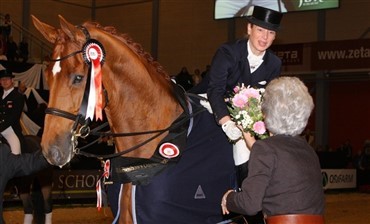 Finalerne i Bundgaard Byg Cup'en blev i år afviklet ved Sportsrideklubben Vallensbæks landsstævne i dressur i denne weekend. Nanna og Millibar lagde afstand til konkurrenterne allerede i 1. afdelingen af finalen, som de vandt med en score på 74.123% I dag, søndag, blev finalen 2. del redet, og igen blev det til en komfortabel sejr; 75.000% hed scoren i dag. Det betyder at Nanna vandt årets finale med samlet score på 149.120% Nr. 2 i dagens finalerunde blev Susanne Barnow og avlshingsten Onassis, der scorede 71.670% - og det resultat betyder at denne ekvipage også slutter på en samlet 2. plads i Bundgaard Byg Cup 2011 med samlet score på 141.670%. Samlet nr. blev Lone Madsen på Don Scufro-sønnen Don Chopin, der i dag scorede 69.670% og slutter med et samlet resultat på 138.350%. Endnu en Skodborg Merrald - denne gang Sandra - blev nr. 4 i det samlede resultat på hoppen Weltliebe e. Weltjunge. Ekvipagen scorede 138.040% samlet. Af øvrige resultater fra stævnet kan bl.a. nævnes lørdagens Grand Prix-klasse. Her blev det til sejr til Sofie Jeppesen og Hedebo's First As e. First Flair R med en score på 67.589%. Jim Rasmussen blev 2'er på Broholm's Highlight e. Midt-West Ibi-Light med 67.234%. Thomas Dolleris Larsen og Græsmarkens Don Pedro e. Blue Hors Don Schufro blev nr. 3 med 66.738%. I dagens Grand Prix Kür, der netop er afviklet, vandt Jim Rasmussen og Broholm's Highlight med 74.750%, foran Thomas Dolleris Larsen og Græsmarkens Don Pedro, der scorede 72.250%. Norske Ellen Birgitte Farbrot blev 3'er med Kraglun Cladiat, der fik 70.000%. Se samtlige resultat fra stævnet via link til højre.