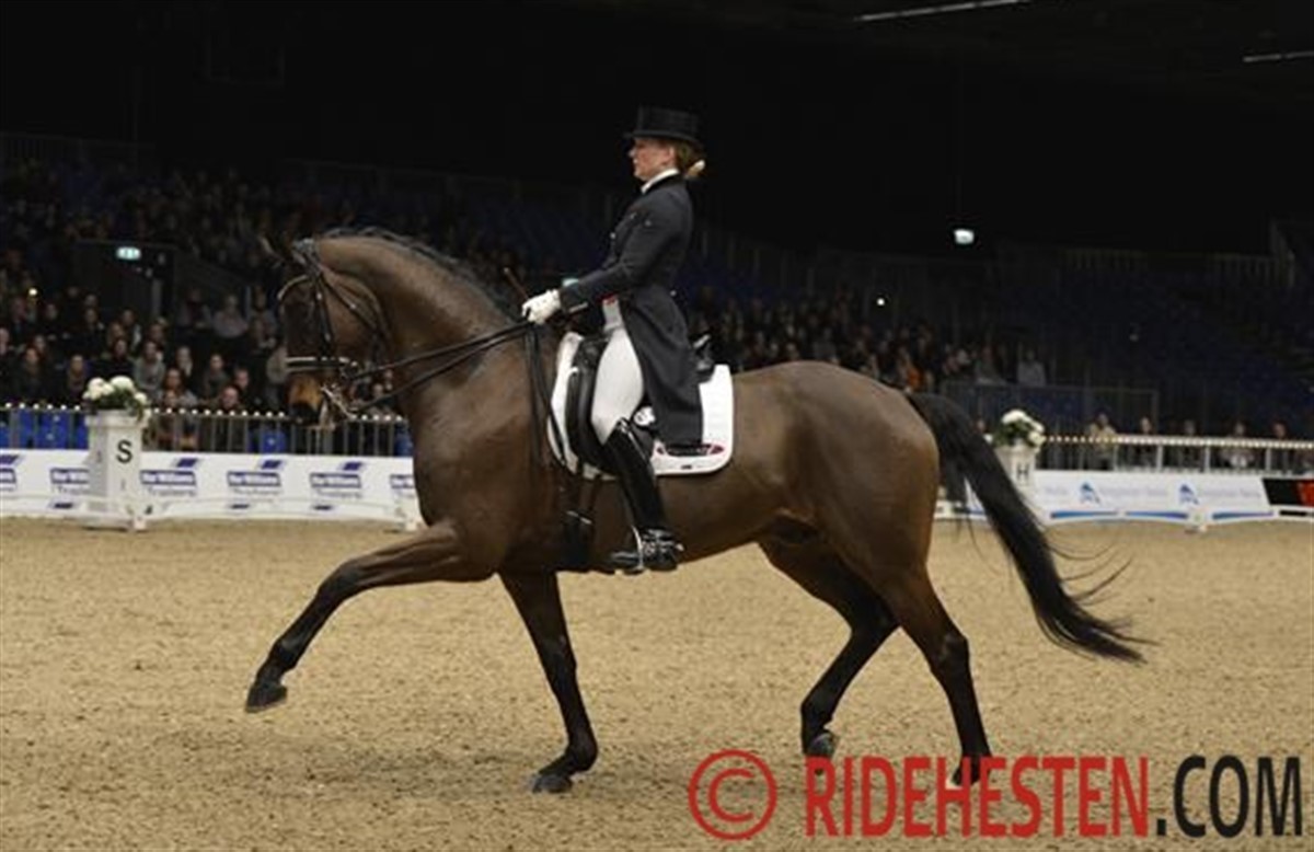 Ditte Mikkelsen på Little Jo e. Londonderry/Weltmeyer sejrede i svær Intermediaire I med 65,714%.