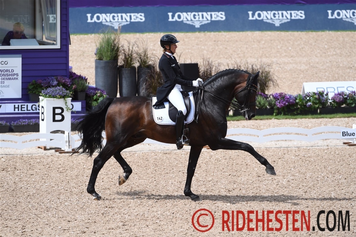 Det var Nanna Skodborg Merrald og Blue Hors Zepter e. Blue Hors Zack/ Wolkentanz II, der i overbevisende form kunne tage sejren i World Cuppen. Ekvipagen var den sidste på banen og startede i fin form med en fin parade og en flot første øgning. Det samme kunne siges om næste parade og tilbagetrædning, hvor Nanna viste kontrol og et flot overblik. Generelt viste ekvipagen flotte og balancerede overgange. I den frie skridt hang Zepter en smule i jorden, hvis man vil finde noget at kritisere. Ellers en god kvalitet i den samlede skridt og i passage. Det samme kunne siges om den næste piaffe, der blev udført til perfektion og med karakteren 8,4. Galopprogrammet startede også flot med en række fine toer-changementer og gode øgninger. Mod slutningen var det stadig et fejlfrit program.