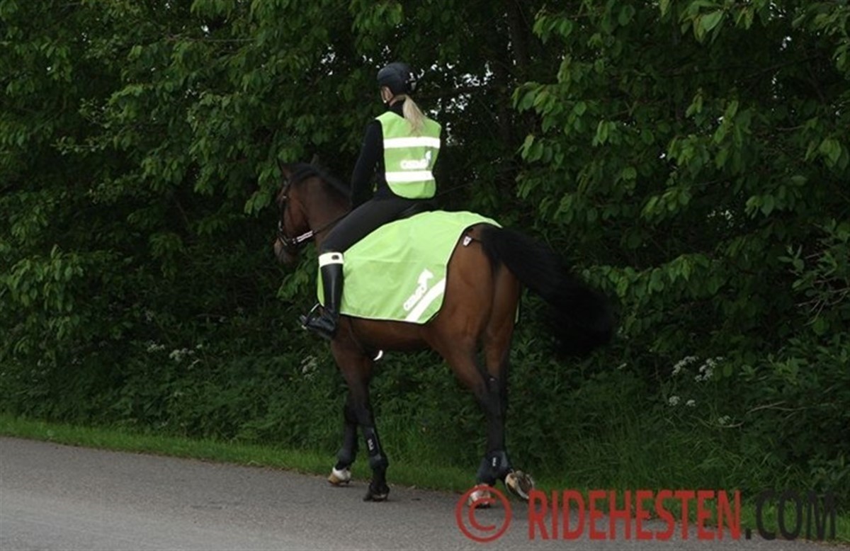 I kan være meget svære at se for de andre trafikanter, og derfor er det vigtigt, at I er så synlige som muligt. Du sidder på et flugtdyr Det er ofte nødvendigt for ryttere at ride langs vejene. Men heste er flugtdyr og derfor potentielt farlige i trafikken. De reagerer ofte instinktivt og uforudsigeligt på pludselige lyde og uvante synsindtryk. En skræmt hest, der springer til side, sparker eller sætter i løb, kan skabe farlige situationer i trafikken. I værste fald kan der ske en ulykke, hvor nogen kommer til skade. Det kan gå ud over både rytter, hest, bilister, cyklister og fodgængere. Det sker heldigvis ikke ofte. Men de farlige situationer kan forebygges. Når du rider i trafikken Husk ridehjelm – ALTID! • Du skal ride i vejens højre side, med mindre der findes en særskilt ridesti. Du må ikke ride på cykel- og gangstier. • Rid én og én i højre side af vejen. Kun hvis I er mange, skal I ride to og to. • Rid aldrig for løse tøjler. • En ung og urolig hest bør følges med en erfaren og rolig hest, hvor den erfarne går tættest på trafikken. • Giv tegn i god tid, så andre ryttere og trafikanter er forberedt på, hvad du vil gøre. • Hold samling på gruppen. Kryds vejen samtidigt. Lad aldrig heste vente på hinanden på hver sin side af vejen. Heste er flokdyr, og i værste fald kan en ventende hest løbe efter de heste, som allerede er kommet over vejen. • Kryds altid vejen, hvor der er fuld oversigt - og f.eks. aldrig før et sving. • Når du rider i lygtetændingstiden, skal du have en lygte på dit venstre ben. Lygten skal lyse hvidt fremad og rødt bagud og være synlig på mindst 150 meters afstand. Hesten skal have refleksbånd på alle 4 ben. Refleksbåndene skal være mindst 5 cm brede. Du kan blive ekstra synlig ved selv at tage en refleks/diodevest på og give hesten et lyst dækken på, evt. med påsyede refleksbånd. • Fodgængere passeres altid i skridt. • Tag ned i skridt, hvis en cyklist ønsker at overhale. Når du kører i bil og skal forbi en hest • Sæt farten ned og kør forbi i god afstand. • Hvis du ikke kan komme forbi, så hold god afstand til hesten, indtil det er muligt at passere. • De fleste heste er ikke bange for biler, men hesten kan blive bange for noget andet - f.eks. en plasticpose - og hoppe til siden. • Heste bliver ofte bange for uvante lyde. Hvis du kører med en last, der rasler eller flagrer, skal du være ekstra forsigtig. • Pludselige lyde skræmmer hesten mere end kontinuerlige. Trykluftbremser og signalhorn vil derfor ofte skræmme hesten. • Hvis du holder stille og lader hesten passere, så vent med at starte og speede op, til hesten er kommet på god afstand. • Vær opmærksom på, om rytteren giver tegn til dig om f.eks. at sænke farten eller stoppe op. • Blænd lyset ned, når du møder en hest i mørket. Når du kører på cykel og skal forbi en hest • Cyklen er næsten lydløs. Ofte opdager hest og rytter dig først, når du er meget tæt på. Det kan overraske og skræmme hesten. • Derfor skal du på god afstand sikre dig, at hest og rytter ved, at du nærmer dig. Kald på rytteren og sig, at du vil overhale. • Hold god afstand, når du kører forbi. • Vær opmærksom på, om rytteren giver tegn til dig om f.eks. at sænke farten eller stoppe op. Hvor mange rideulykker sker der i trafikken? Der sker årligt ca. 130 rideulykker i trafikken og 20-30 af dem involverer andre trafikanter, oftest en bil. Det er oftest bilister og andre trafikanter, der kommer til skade i disse ulykker - ikke rytteren. Rideulykker i trafikken udgør kun en meget lille del af de i alt ca. 6500 rideulykker, der hvert år registreres på skadestuerne. De fleste rideulykker sker i ridehuset, på ridebanen eller i stalden. Kilde: Dansk Ride Forbund/Ulykkesregistret, Statens Institut for Folkesundhed