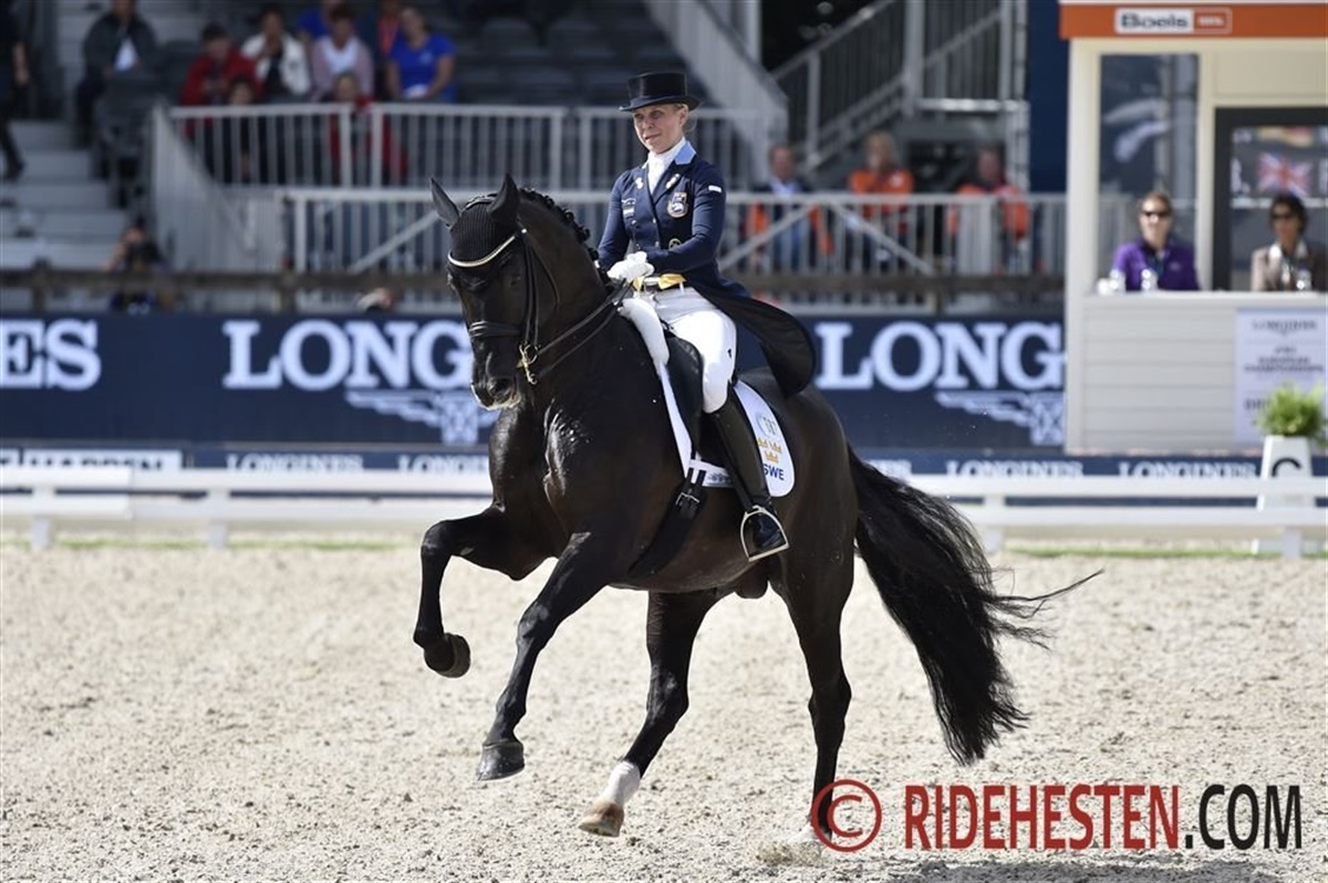 Sverige har lagt sig på en foreløbig bronzeplads efter et lidt forsigtigt, men resultatmæssigt flot udlæg af Antonia Ramel til 74,224% det toppede Therese Nilshagen med Dante Weltino e. Danone, men kun lige. Therese havde sat tempo på den sorte hingst, og det kostede i skridtkarakteren, og så indløb der fejl i etterchangementerne, med 75,466% er det nu op til Juliette Ramel og Patrik Kittel at forsvare bronzemedaljen i morgen.