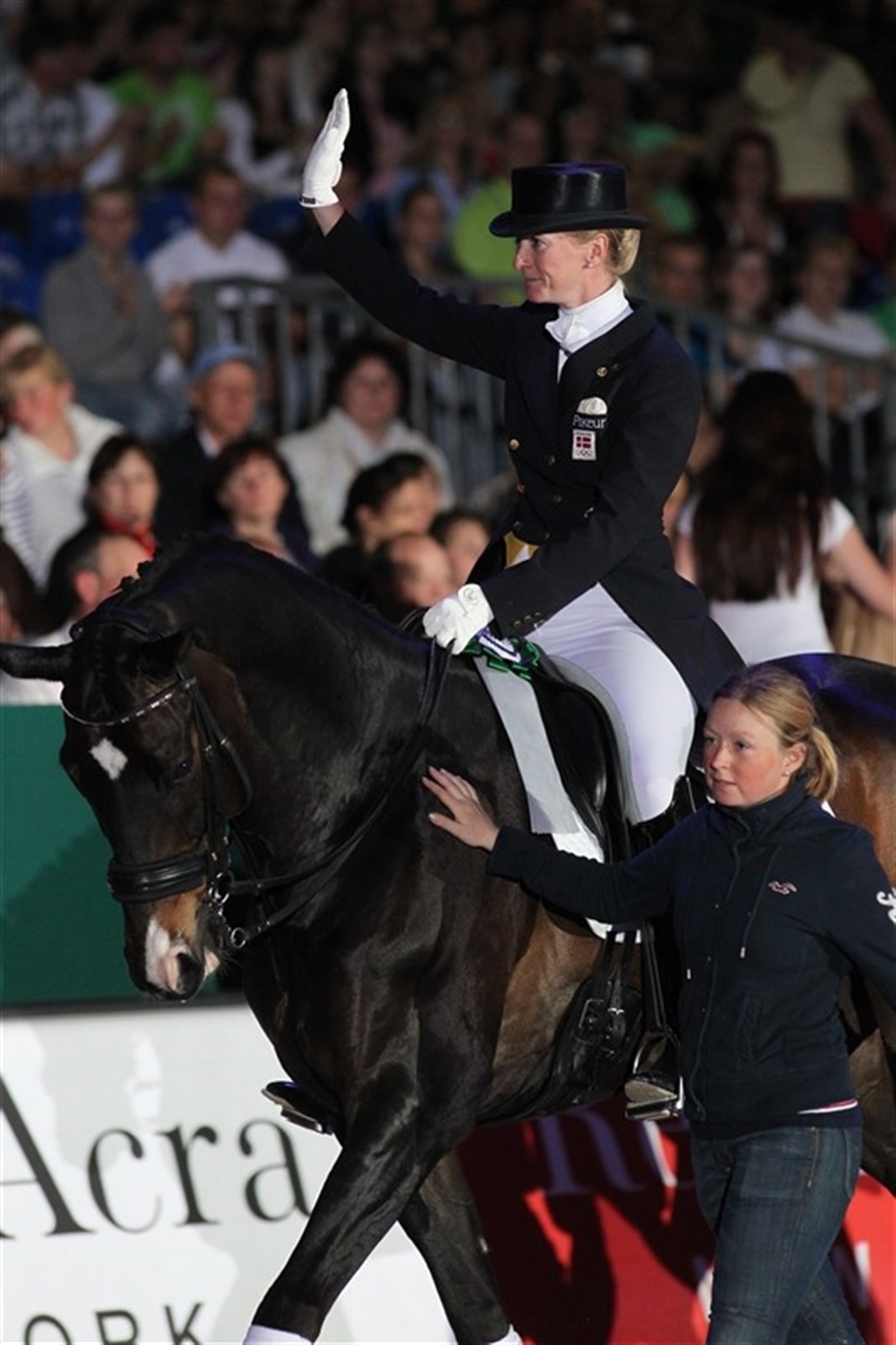 - Jeg er helt målløs over det her. Mit mål var at komme i top 6, så det her havde jeg ikke forventet. Jeg må dog sige, at Digby har udviklet sin trav over vinteren også fordi han er blevet stærkere, fortalte Nathalie efter andenpladsen i World Cuppen var en realitet. - Der kommer til at gå nogle dag inden det helt falder på plads, og jeg helt forstår, hvad der er sket her. Nu skal Digby hjem og holde lidt fri, sluttede hun. Der er dog ikke mange fridage til Nathalie, for allerede onsdag i den kommende uge, skal hun starte Fabienne og Horsebo Smarties ved det internationale stævne i Hagen. Nathalie og Digby gjorde det igen Storfavoritten hollandske Adelinde Cornelissen og Parzival blev med et enstemmigt dommerkollegie som ventet vinder af World Cup finalen 2011 i Leipzig med 84,804%. Hvad der derimod ikke var ventet, men efter den kvalifiserende G.P. kun håbet og ønsket var, at Prinsesse Nathalie og Digby kunne gentage deres flotte indsats, og det gjorde de ved lørdag aften for en næsten udsolgte tribuner igen at ride sig ind på en flot andenplads med så imponerende et resultat som 80,036 %. At blive nr.to er et fantastisk resultat for Nathalie, men så sandelig også for dansk dressursport og for Dansk Varmblod. På trediepladsen fulgte ligeledes som i Grand Prixen Tyske Ulla Salzgeber med Herzruf´s Erbe (78,821%) medens sidste års World Cup vinder Edward Gal med Sister de Jeu som den enenste forbedrede sit resultat fra Grand Prixen fra en ottende til en fjerde plads i finalen med 77,393 %. En rytter som red sit livs ridt, men som slet ikke blev honoreret efter fortjeneste var svenske Patrik Kittel på Watermill Scandic H.B.C. De opnåede 76,375 % hviklet rakte til 6 plads men blev modtaget med piften og hujen af et fagkyndigt publikum.