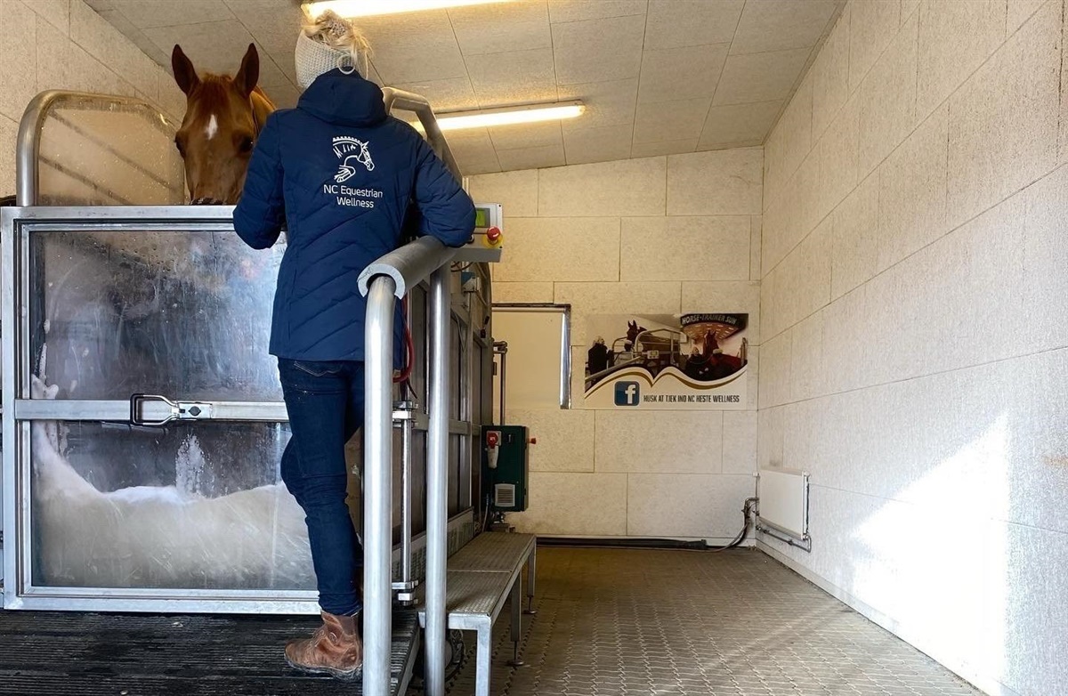 De er tre ansatte i NC Heste Wellness, og der er plads til at opstalde syv heste i træningscenteret. Derudover kommer der mange kunder kørende hver dag for at få deres heste trænet på vandbånd.