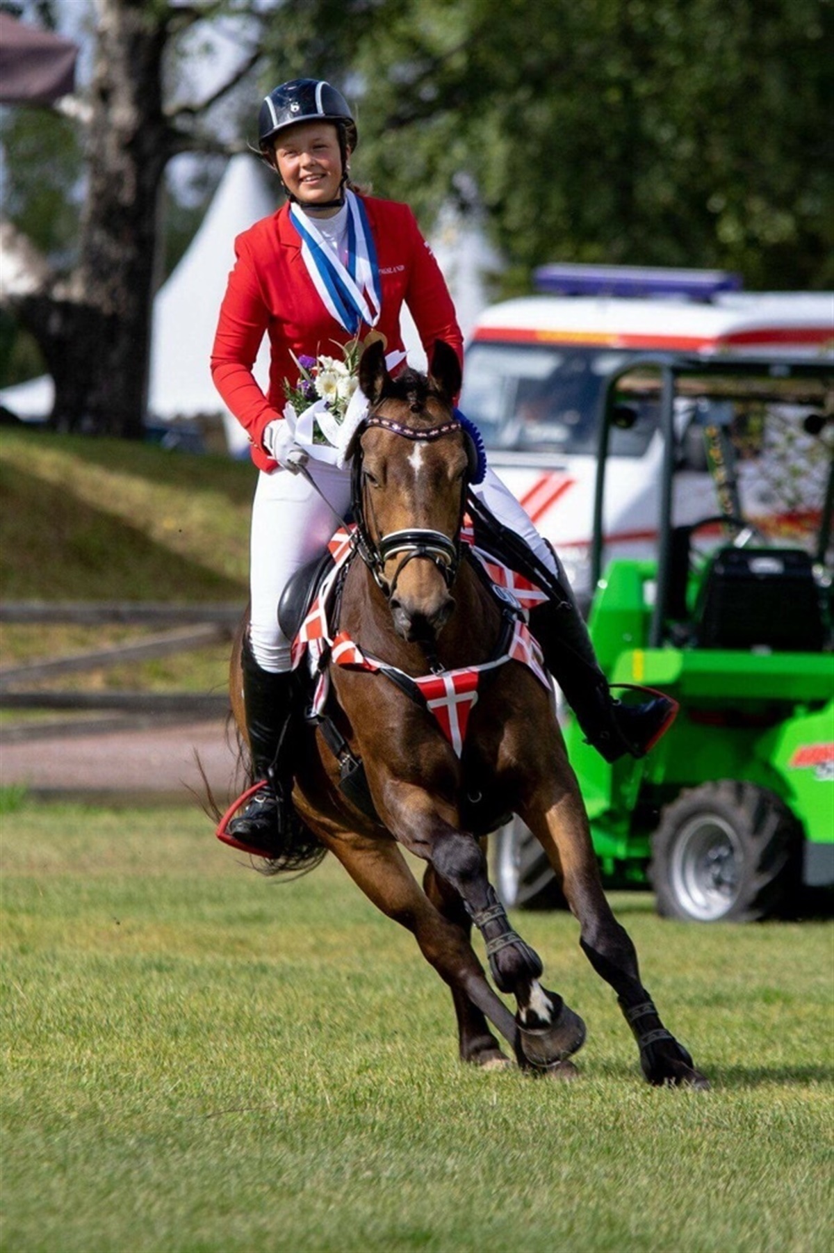 Hun lagde sig i spidsen allerede efter dressuren og førte stadig efter lørdagens terrænridning. Her til formiddag blev NM i military for ponyer afgjort på springbanen ved stævnet i finske Ypäjä, og her sikrede Astrid Vibe Skovgaard sig den individuelle NM-guldmedalje efter en runde med fire fejl.