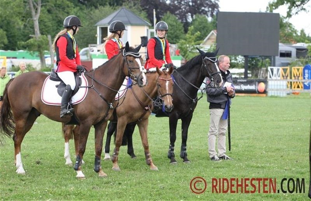Efter en tæt kamp med de svenske værter sikrede det danske springlandshold for kat. I-ponyer her til eftermiddag sølv i holdkonkurrencen ved de nordiske mesterskaber på Flyinge.