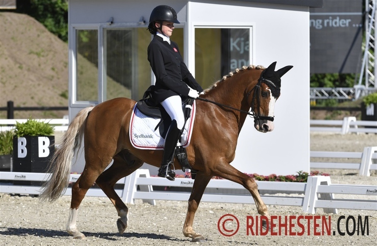 Vi har talt med ponyrytter Amira Aasted Jespersen, der fortæller: – Jeg havde på ingen måde troet, at jeg skulle gå hen og have hele to topridt, og jeg havde endda en større fejl i en overgang, hvor han travede frem istedet for at galopperede, hvilket var min fejl. Mine holdkammerater red alle meget flotte programmer, og vi glæder os alle sammen til at give den max gas i morgen i den individuel konkurrence.