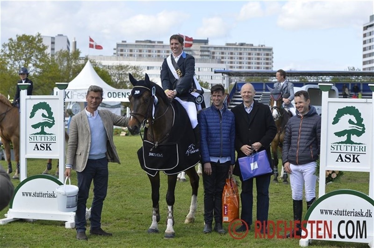 Christopher Melander fra Norge på Buckle Up løb med sejren i dagens sidste klasse, Stutteri Ask Grand Prix of Odense, skarpt forfulgt af den svejtsiske Chantal Müller på U Tabasca.