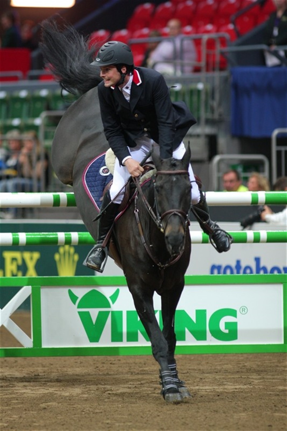 Sidste konkurrencedag i Scandinavium er forbeholdt to finaler, her til morgen afvikledes Speed FInlane på 1,45 m og kl. 13.00 rider første rytter på banen i World Cup finalen. Her er det Jessica Kürten som fører efter en 3. plads i torsdags og en sejr i fredagens World Cup klasse. I går aftes var Kürten helt suveræn i Grand Prix-klssen på den danske varmblodshoppe Quibell opdrættet af Helle Kragh Andersen. Og her til morgen i speed finalen så det længe ud til at Jessica Kürtens fejlfrie runde på Castle Forbes Cosma e. Couleur-Rubin kunne holde hele vejen, men så red Tony Andre Hansen på banen. De norske ryttere imponerede ved EM i Mannheim sidste år, hvor det lykkedes for holdet at kvalificere sig til OL i Hong Kong. Tony Andre Hansen var en del af de succesfulde hold, og i dagens Speed-klasse red han på banen på Brokers Rhani de Puuvil e. Lantano. Den mørkebrune hoppe ramte et par forhindringer undervejs, men Tony Andre Hansen red fortsat flydende fremad, og lod hoppen om selv at passe på sine ben, og det gjorde hun. Parret susede fejlfrit i mål i tiden 61,64 sekund, 0,09 sekund hurtigere end Kürten. Linnea Ericsson var alene om at respræsentere de danske farver i speed finalen, og her fik Cordivo et nedslag hvilket sendte dem ned på 14. pladsen af 16. deltagere.