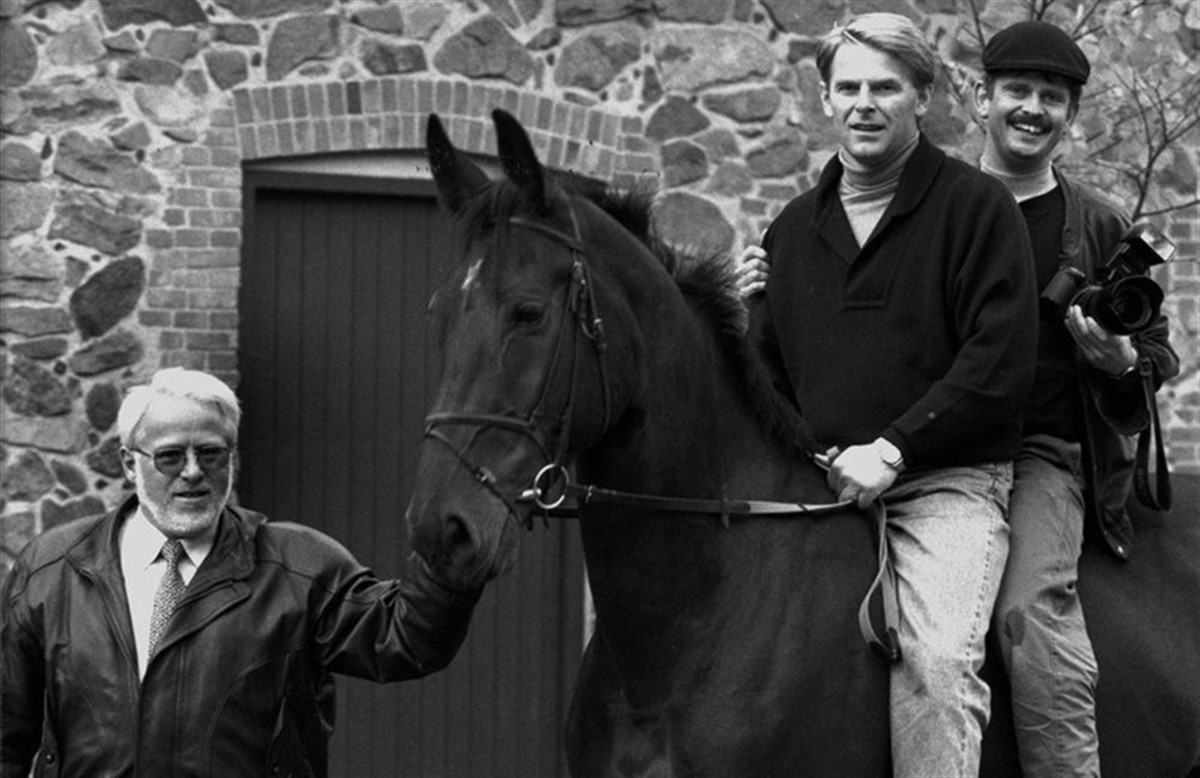 Ridehestens fotoarkiv rummer knap 2 millioner billeder og går helt tilbage til slutningen af 1970’erne. Blandt de utallige billeder gemmer sig nogle sande perler, fyldt med gode minder fra dansk avl og ridesport. På Ridehesten.com kan du fremover glæde dig til at se eller gense de nostalgiske billeder, når billederne - og ikke mindst historien bag dem - bliver præsenteret. I efteråret 1994 indgik Dansk Varmblod et samarbejde med Mediehuset Wiegaarden om forbundets nye medlemsblad: Ridehesten. I forbindelse med samarbejdets indgåelse blev der stillet op til fotografering, og dagens billede viser Dansk Varmblods formand, Jan Pedersen og magasinets udgiver og fotograf Jørgen Bak Rasmussen til hest, flankeret af Ridehestens første redaktør Niels Holmgaard. Det første nummer af magasinet Ridehesten i avl og sport udkom kort før Dansk Varmblods Hingstekåring i marts 1995, og forsiden blev prydet af navnkundige Kyra Kyrklund, Nathalie zu Sayn-Wittgenstein og hingsten Guinness. Se flere Nostalgiske Perler via linket til højre.