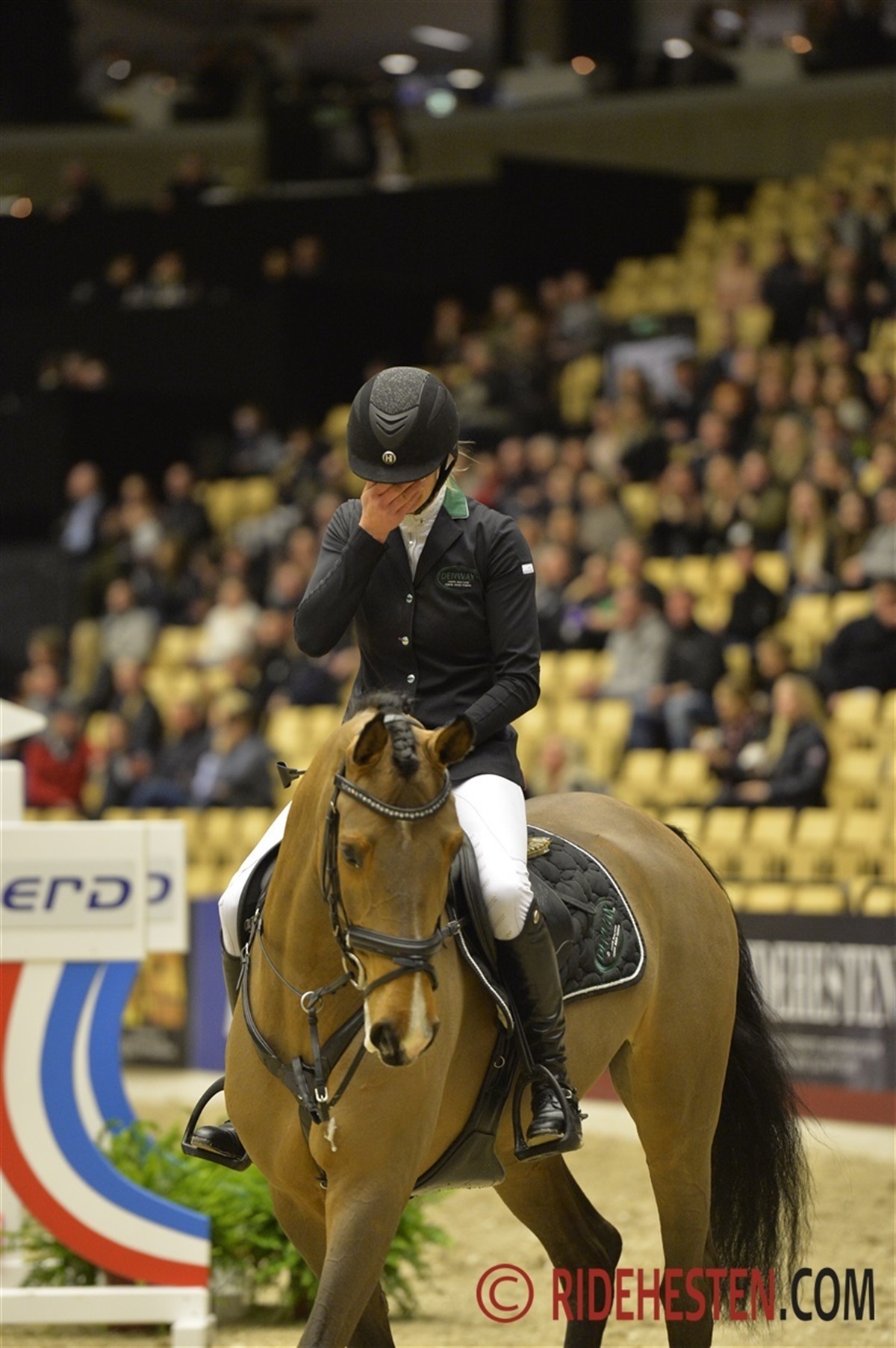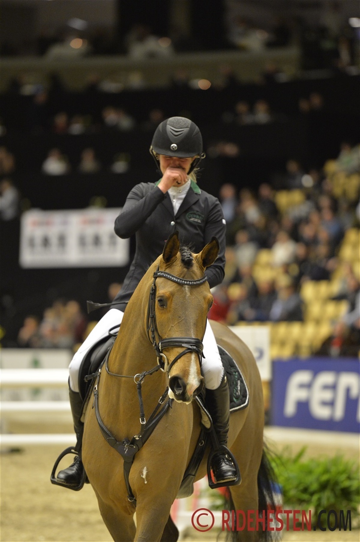 I aften var der 20 unge springheste til start i unghestechampionatet. Denne gang skulle hestene på banen inde i Jyske Bank Boxen, hvor der stadig var 8 forhindringer, men altså lidt mere plads til at komme rundt på. For nogle af hestene betød de nye omgivelser også, at de ind imellem trykkede sig lidt i hjørnerne, hvilket desværre gik udover ridelighedskaraktererne.