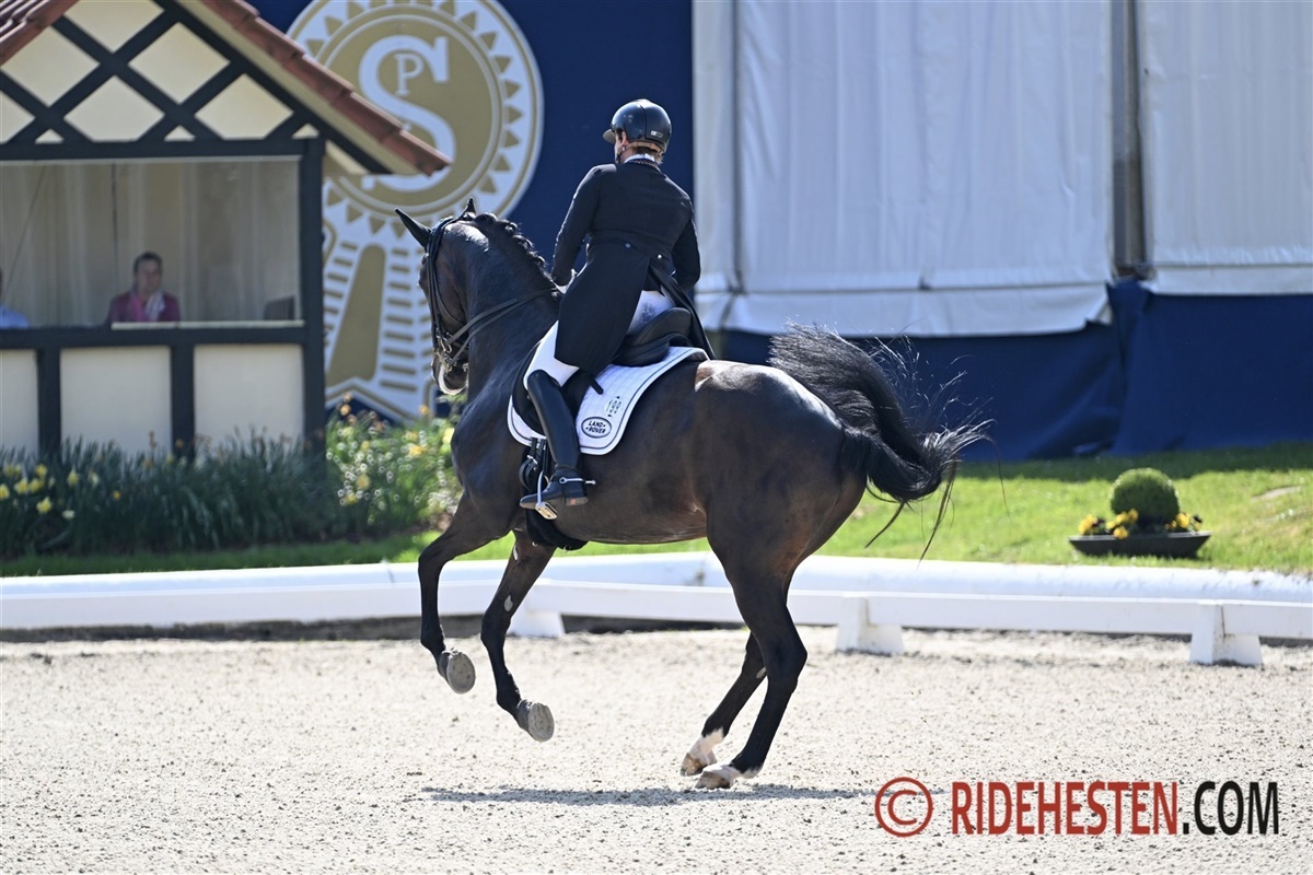 Skovens Tzarina, der som 3-års blev årets dressurhoppe på Dansk Varmblods Eliteskue, var mere afspændt i dag og man sidder tilbage med følelsen af, at hun indenfor de kommende par år, vil blive Werths nye tophest i Grand Prix-sammenhæng. Skridten er det svageste punkt på den 9-årige hoppe, men umiddelbart er det ikke selve kvaliteten der mangler, men derimod hoppens lidt iltre temperament, som spiller ind. Med 76.00% var der ikke den mindste tvivl om at sejren skulle tilfalde Werth og den charmerende hoppe, som går en stor fremtid i møde.