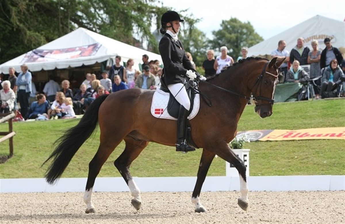 Paralympisk bronzevinder sejrer på Broholm Caroline Cecilie Nielsen slog fast, at hun er Danmarks bedste handicaprytter i grad 2. Den delvist spastisk lammede rytter vandt både dagens klasse og det samlede forbundsmesterskab i handicapridning grad 2. På Rostorn’S Hatim-Tinn red Caroline Cecilie Nielsen et overlegent kürprogram, som udover at give hende 73,78 % også sikrede hende guld i forbundsmesterskabsklassen med samlet 144,41 %. Ingen ben men stort talent Stinna Tange Kaastrup mangler sine ben, men ikke talent. På Labbenhus Snøvs leverede den unge rytter et stilsikkert program, der blev belønnet med 72,03 %. Dermed fik ekvipagen i alt 140,44 % og sølvmedaljen i grad 2. Bronzen gik til Liselotte S. Rosenhart på Priors Lady Rawage med i alt 128,19 % og 62,32 % for dagens kür. Ella Hartvig Severinsen vinder i grad 3 I grad 3 var Ella Hartvig Severinsen på Chester mesterskabets vinder. Med et ridt i küren til 68,53 % fik ekvipagen samlet 142,89 % og guldmedaljen. Sølvet gik til Malene Goltermann med 68,07 % i küren og 132,81 % samlet. Mette Jensen på Mountheavens Lipsha red med 64,72 % i küren og 127,80 % samlet bronzen i hus.