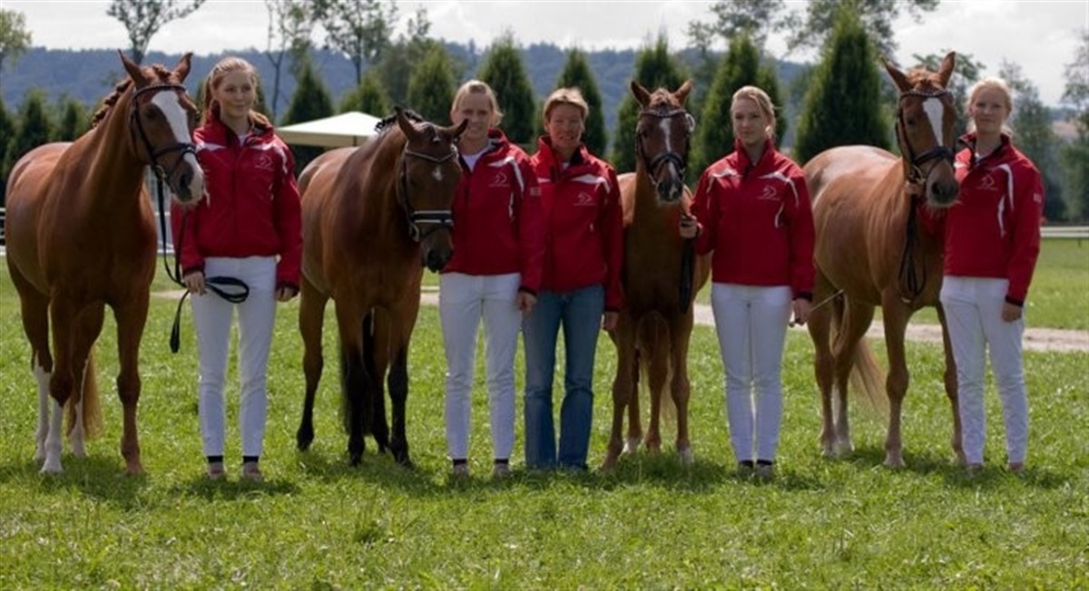 Det har været en særdeles spændende og medrivende dag i Schweiz, hvor landsholdene har kæmpet om medaljer. De danske ponydressurryttere red på et meget højt niveau i holdkonkurrencen, hvor det lykkedes for pigerne at erobre bronzemedalje i tæt kamp mod tyskerne og hollænderne. Alle fire danske piger red så godt, at de er kvalificeret til finalen, men da hver nation kun må have tre ryttere i finalen, skal en af de danske piger desværre skilles fra. Bronzeholdet bestod af: DORNICK-SON /Hougaard Sofie, CASIO Stall /Møller Christina, FERRARI / Seemann Sofie og CENTRUM / Skodborg Merrald Nanna. - Vi formåede efter en meget spændende konkurrence, hvor vi skiftevis var lidt bagud og lidt foran Belgien og Holland at ride bronze medaljerne hjem. Aldrig har konkurrencen været så hård og tæt om sølv og bronze som i år. Kun få point skilte os fra Sølv, bronze og være ude af medajlerækken. For guld er stadig uopnåelig med det stærke tyske hold. Faktisk red alle fire danske ryttere i A-finalen, men da der kun må være tre fra hver Nation måtte den ene vælges fra til B-finale. Dette var yderligere svært da både Sofie Seemann og Sofie Hougaard havde opnået nødagtig samme point. Følgende ryttere skal ride A-finale på søndag: Nanna Merrald - Centrum som opnåede 71,05%, Christina Møller - Casio med 70,15% og Sofie Hougaard med 68,10%. Lørdag rides B-finalen, hvor Sofie Seemann forventes at ligge godt til, da hun i holdkunkurrencen red 68,1%. Det har været en fantastisk godt dag med stor spænding som nu er overstået og rytterne fejres på behørlig vis deres medaljer, fortæller holdleder Rigmor Kristensen. På springbanen var det præcist lige så spændende, for det danske hold måtte ud i omspringning om bronzemedaljen med tyskerne. Desværre for de hårdt kæmpende danskere måtte de se sig slået af tyskerne til fjerdepladsen med lille margin. Englænderne vandt guld med 9 fejl - Holland sølv med 15 fejl mens Danmark og Tyskland stod lige på tredjepladsen med 16 fejl inden afgørelsen ved omspringning. Det danske hold, som var så tæt på medalje bestod af: KILCONELL SAM /Barker Rikke Belinda, ANYDALE RON /Meinert Ketterle Shannon, NIKOLINA /Vinter Jensen Jessica og Alexandra E. Sisseck / Top Jezable de L'Etape. De schweiziske arrangørere er ikke så hrtige til at opdatere deres hjemmeside, men man kan følge med ved at følge linket her på siden. I military har rytterne redet dressurkonkurrencen, i morgen lørdag følger så den sprændende terrænspringning. De danske ryttere kommer desværre ikke til terrændisciplinen med et godt dressurresultat i bagagen, efter dressuren ligger danskerne på en 10. plads. Bedste danske ekvipage er BRAVEHEART/Camilla Hansen på en individuel 28. plads. de øvrige danske ryttere er: SKIPPER MØNSTERGAARD/Mortensen Nanna, KJØLENS FLORET/Gadgaard Sarina og BØGEGAARDENS CALIBRA/Christiansen Nicoline. Tyskerne fører holdkonkurrencen foran England og Italien.