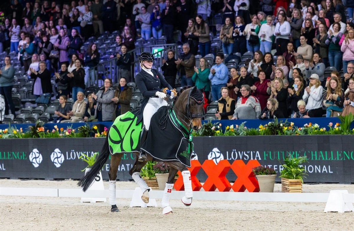 – Jeg synes, jeg havde en virkelig fin og solid tur med supergode pirouetter. Meget stabilt og godt. Musikken var bare så lav, at jeg kom til at ride rundt og bruge krudt på at være lidt irriteret over ikke at kunne høre det. Men jeg er megagodt tilfreds med ham; han er i hårdt selskab her, men lever op til noget af sit bedste, så det kan jeg ikke klage over. Det har alt i alt en virkelig god weekend.