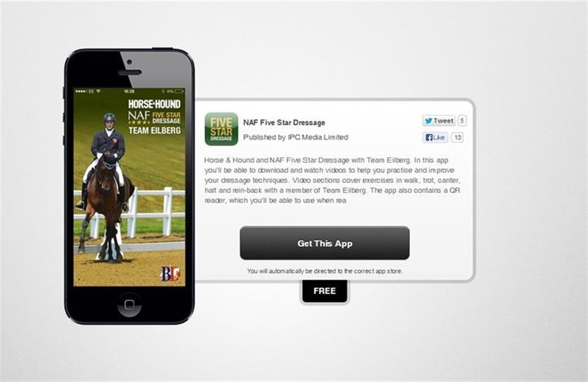 App’en NAF Five Star dressage består af 15 korte videoer, hvor Michael og Maria viser forskellige øvelser, der giver brugeren indsigt i, hvordan man kan få det bedste ud af hesten.