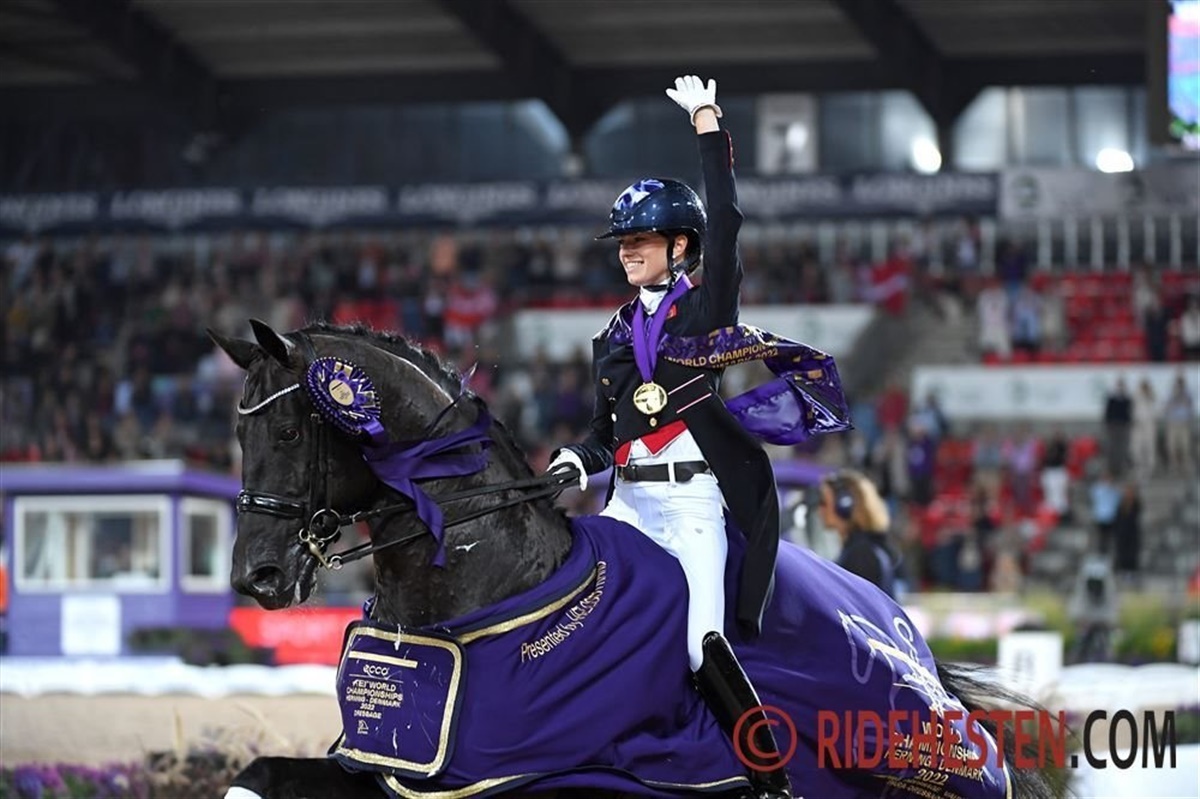 Britiske Charlotte Fry på kun 26 år er nu dobbelt verdensmester med den 11-årige hingst Glamourdale e. Lord Leatherdale/ Negro. Hun trænes af danske Anne van Olst, der i 2008 var på det bronzevindende hold ved OL i Hong Kong.