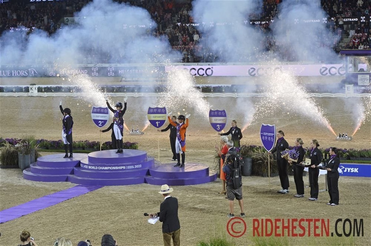 Der blev under Grand Prix Kür ved VM 2022 skabt magiske øjeblikke onsdag aften på Stutteri Ask Stadium, hvor nogle af verdens 15 bedste dressurekvipager viste deres ypperste under spotlight og måneskin til tonerne af deres eget musikprogram.