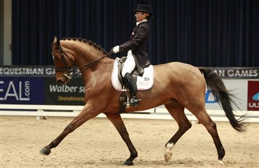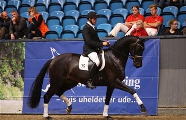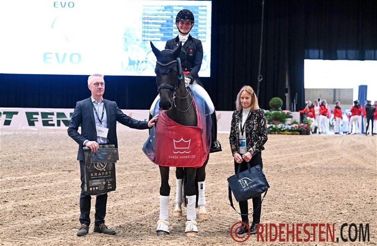 Anna Kasprzak, der selv er tidligere OL-finalist og i det hele taget har et utal af resultater bag sig, red Everian L e. Everdale/ Hochadel (opdr. Karsten Bundgaard) til en score på 74,500% og sejr. Den nu 8-årige DV-vallak, der er tidligere UVM deltager og vandt 7-års finalen i Pavo og DRF’s championat for dressurheste i efteråret, går med stor lethed og ynde og viste flotte øvelser, som lover godt for fremtiden. Der var en lille fejl i toerchangementerne, men ellers havde parret en rigtig flot tur med mange højdepunkter.