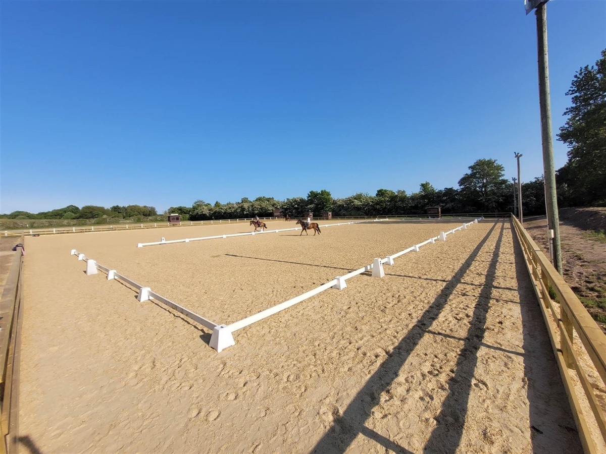 I vinteren 2022 fik klubben lavet ny bund i fibersand på springbanen og i foråret blev begge bunde i ridehusene renoveret. Og nu er det så de store dressurbaner der har fået helt ny bund. Og resultatet betyder, at det nu er muligt både at holde dressurstævner og springstævner på den nye 65x65 bane.