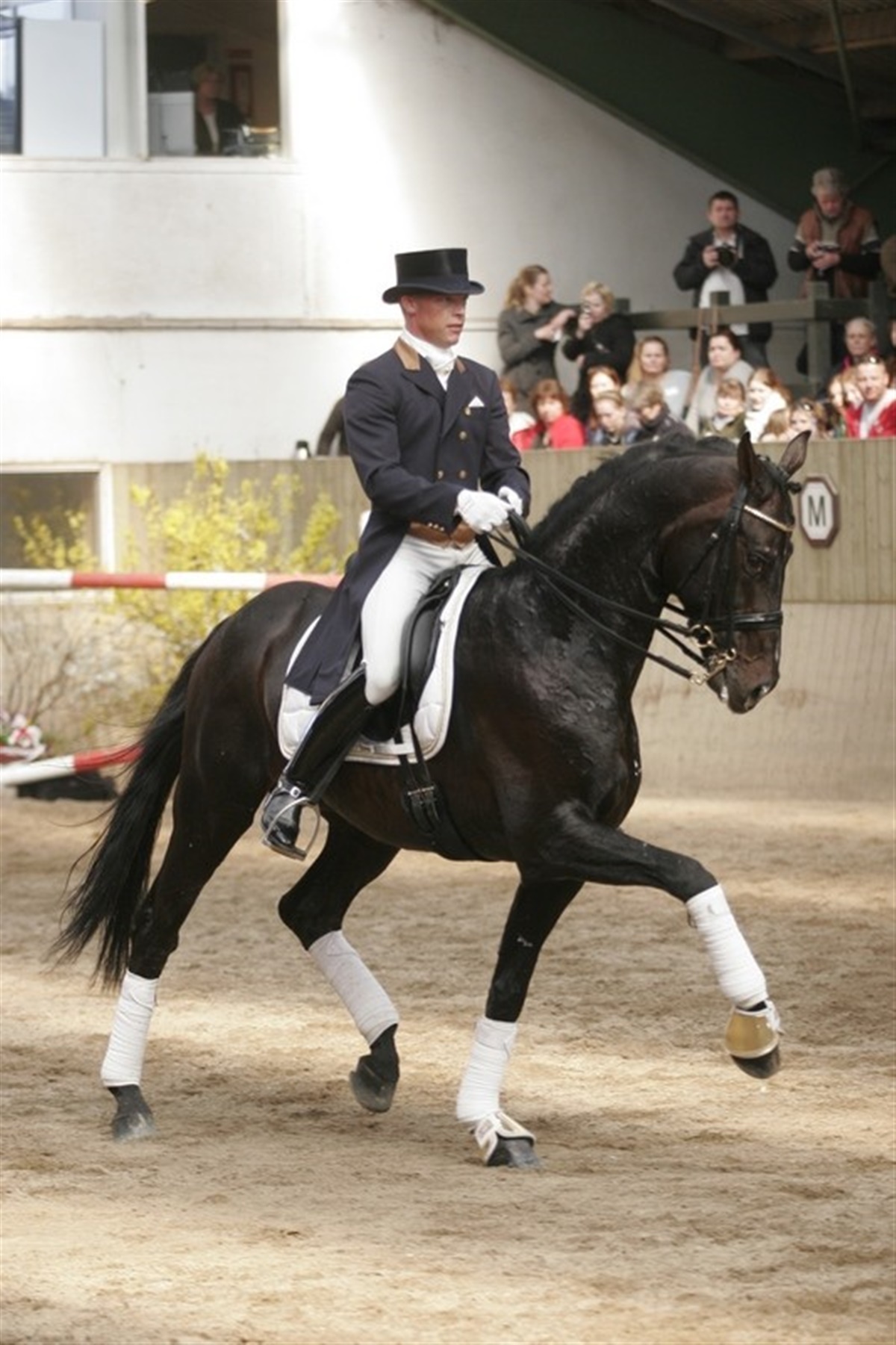 Sidst i januar i år overtog Joachim Thomsen dressurhingsten Samarant fra BFC Horses og fik den store udfordring at blive startklar med hingsten til hingstekåringen i Herning halvandet måde senere. Det kan som bekendt tage sin tid at skabe et nyt partnerskab, men det lykkedes trods alt denne nye ekvipage at vinde MB kür i Herning. Ved samme hingstekåring 3-års hingsten Atterupgårds Fassbinder tilhørende Hanne Lund og Henrik Hansen avlsgodkendt. Hingsten rides nu af Joachim Thomsen, der fornyligt viste den ved åbent hus-hingsteshow hos Stald Cajus. Samarant er for bedækningssæsonen hjemme hos BFC Horses hos Stald Hussmann. Læs magasinet Ridehestens portræt af Brian F. Christensen bag BFC Horses i næste nummer af bladet, som udkommer i den kommende uge.
