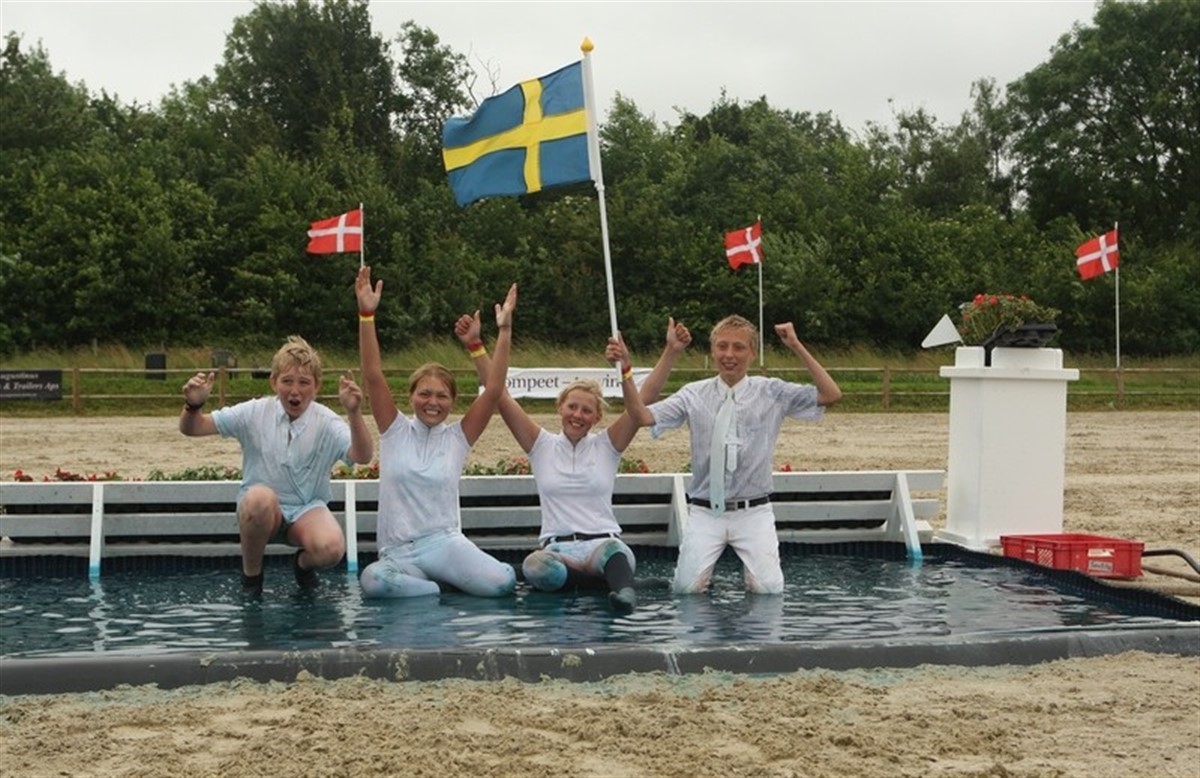 Der var ikke meget julivejr over banerne i Middelfart i dag, men alligevel blev der afviklet flot springning af de unge ryttere. Dagens første klasse var det nordiske holdmesterskab for kat. I-ponyer. Det blev desværre ikke til danske medaljer i konkurrencen, der blev vundet af det svenske hold foran Norge og Finland. Dagens første individuelle mesterskab i springningen var juniorytternes og her blev det til finsk guldmedalje. Julia Sjöman og Verdi R var eneste ekvipage, der red hele mesterskabet uden fejl og kunne derfor få hængt guldmedaljen om halsen. Efter en omspringning mellem tre ryttere tog svenske Louise Torgeson/Alisia sølvet, mens norske Maren Smedhaug/Caleendro tog bronzen. Bedste dansker i mesterskabet blev Regitze Ericsson/Carlos Cantus, der sluttede på 6. pladsen. Mesterskabet hos ungrytterne fik svensk vinder, nemlig Elenor Bellander, der som eneste rytter red fejlfrit i hele mesterskabet. Elenor er ridende på DV-hoppen Strandgården's Mercedes Z, der er kåret med guldmedalje hos DV. Sølvmedaljen endte om halsen på den norske rytter Hedda Brathen, der fik sammenlagt 8 fejl på Rhiannon Ninente. Danmark fik en bronzemedalje i mesterskabet med Monica Bugge Skibsted/Quwita B, der sammenlagt red med 11 fejl i mesterskabet. Lørdagens sidste klasse var kat. III-ponyernes uofficielle landskamp og her blev det Danmarks, der tog guldet og Sverige tog sølvet. Det danske hold bestod af Benedikte Rie Truelsen/Mr. Limbo, Anne Kristine Rie Truelsen/Flashy Gold Finch, Clara Hallundbæk/Heartbreaker, Amalie Christiane Sophie Rosenkrantz/Mystery Man og Josephine Bøgh/Bakkegaardens Coco Casino. Se alle resultater via linket til højre.
