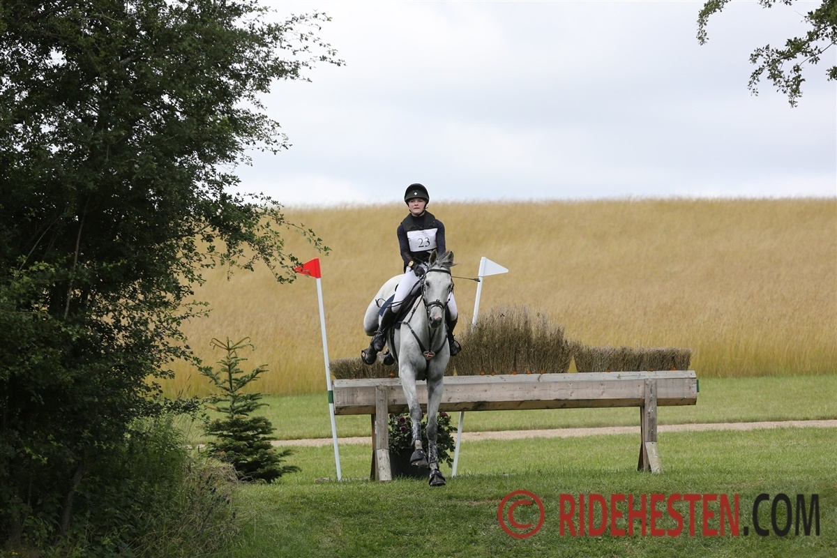Det var perfekt vejr til formålet, da der i dag skulle rides terrænspringning og uddeles medaljer på Lundegården i Høsterkøb. Fredag og lørdag har arrangøren af DRF-mesterskaberne i military, Sportsrideklubben, afviklet dressuren og ridebanespringningen på hjemmebanen i Bernstorffsparken. Traditionen tro blev ekvipager og publikum flyttet lidt nordpå til den fantastiske terrænbane på Lundegården.