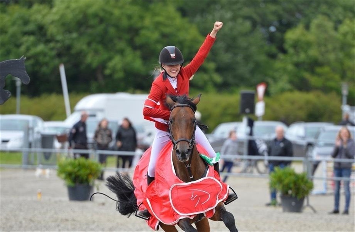 Spændingen steg dog yderligere i omspringningen hvor de fire ryttere Sisse Pedersen Mylin, Madelen Bennetsen, Naja Møller Madsen og Noona Wildfang Linde satsede alt. Det betød at Sisse endte med 8 fejl, mens kun 11-årige Noona både red fejlfrit og hurtigst.