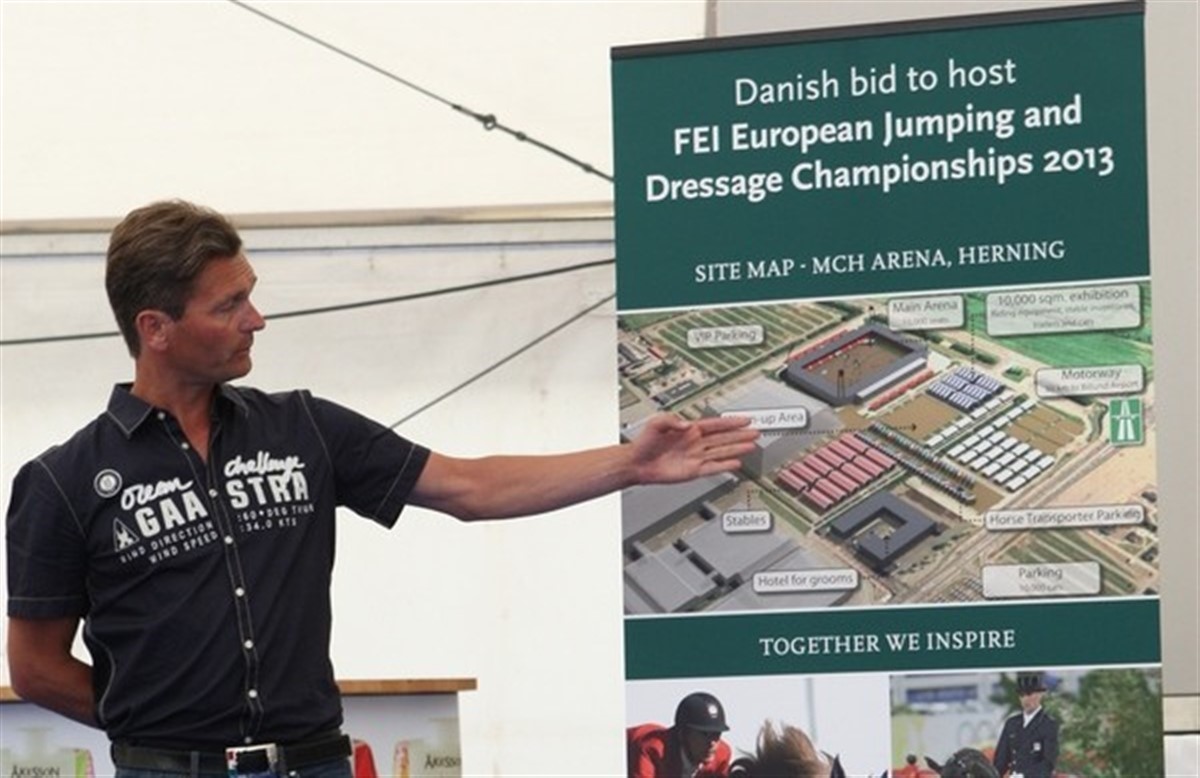 Mesterskaberne afvikles den 21. – 25. august 2013. Det er JBK Horse Shows, Sport Event Denmark, Herning Kommune og Dansk Ride Forbund, der har arbejdet sammen om det bud, der har sikret, at Herning bliver værtsby for det dobbelte europæiske mesterskab. MCH Arena og området omkring kommer til at danne de rammer, der vil tage mesterskaberne til nye højder. Danmark bliver ridesportens centrum i 2013 Dansk Ride Forbunds formand Ulf Helgstrand er til FEI’s generalforsamling i Taiwan, hvor bestyrelsen netop har besluttet at tildele Danmark mesterskaberne. ”Danmark er klar til EM i springning og dressur, der bliver den største ridesportsoplevelse nogensinde på dansk grund – både for deltagere og publikum. Facilliterne i Herning giver os mulighed for at samle de to mesterskaber under rammer, der ikke er set tidligere i ridesporten. At vi kan afholde mesterskaberne i Danmark i 2013, er lykkedes i kraft af et professionelt og visionært samarbejde mellem JBK Horse Shows, Sport Event Denmark, Herning Kommune og Dansk Ride Forbund – kun ved at løfte i flok, kan vi nå nye højder for sporten”, siger Ulf Helgstrand. Together we inspire JBK Horse Shows, Sport Event Denmark, Herning Kommune og Dansk Ride Forbund har i fællesskab arbejdet på det bud, der nu har fået EM i dressur og springning til Danmark i 2013. Det dobbelte mesterskabsstævne skal afvikles på MCH Arena i Herning, der til daglig er hjemmebanestadion for fodboldklubben FC Midtjylland. Stadion og faciliteterne omkring gør det muligt at skabe helt unikke og banebrydende rammer for det dobbelte EM. ”Så bliver det ikke meget større, og dette kombinerede EM vil skrive historie” siger Lars Lundov, direktør, Sport Event Denmark, og tilføjer ”Dette vinderbud viser også, at Danmark kan give de store konkurrenter ”bag-ben” og dermed fortsætte den gode udvikling, hvor vi p.t. vinder alt, hvad vi byder på” ”Vi er meget begejstrede og ser frem til at byde på ridesport i verdensklasse i Herning. At det dobbelte EM afvikles i Herning i 2013 passer perfekt i kommunens eventstrategi, og vi er overbeviste om, at vi kan tilføre mesterskaberne rammer, der giver ridesporten mulighed for at folde sig ud i helt nye dimensioner”, siger Lars Krarup (V), borgmester i Herning. En ridesportsevent i særklasse At skabe en ridesportsbegivenhed i verdensklasse kræver de bedste forhold – ikke kun for publikum, men også for udøverne. Det er nemlig altafgørende for arrangørerne, at ryttere og heste sikres de bedste rammer, så de kan præstere ridesport i verdensklasse på dansk grund. ”Vi er virkelig stolte og kan ikke vente med at komme i gang. Vi er overbeviste om, at en væsentlig årsag, til at vi har fået mesterskabet, er, at vi har lagt stor fokus på at skabe de bedste rammer for udøverne, for kun under optimale forhold kan ekvipagerne yde deres ypperste. De rammer kan vi give dem i Herning, og det især i kraft af det stærke samarbejde mellem Sport Event Denmark, Herning Kommune, Dansk Ride Forbund og JBK Horse Shows, der ligger bag mesterskaberne”, siger Jens Trabjerg, direktør i JBK Horse Shows. Mesterskaber understreger Danmarks internationale position ”Det er intet mindre end fantastisk. At Danmark bliver vært for EM i dressur og springning er et stærkt symbol på den massive udvikling, som dansk ridesport har gennemgået de seneste år, der har resulteret i VM-medaljer i dressur i 2006, OL-bronze i dressur i 2008 og dansk sejr i Promotional League-finalen i 2010, der giver adgang til superligæn i springning. Udviklingen symboliseres også gennem vores talentarbejde, som har resulteret i stribevis af medaljer ved de internationale mesterskaber for unge de seneste år. At Danmark er med helt fremme i international ridesport stadfæstes af tildelingen af det dobbelte EM i 2013, samt at Danmark med JBK Horse Shows som arrangør er vært for EM for junior- og ungryttere i dressur på Broholm i 2011”, siger Jens-Erik Majlund, generalsekretær i Dansk Ride Forbund. Pressemeddelelse: Dansk Ride Forbund