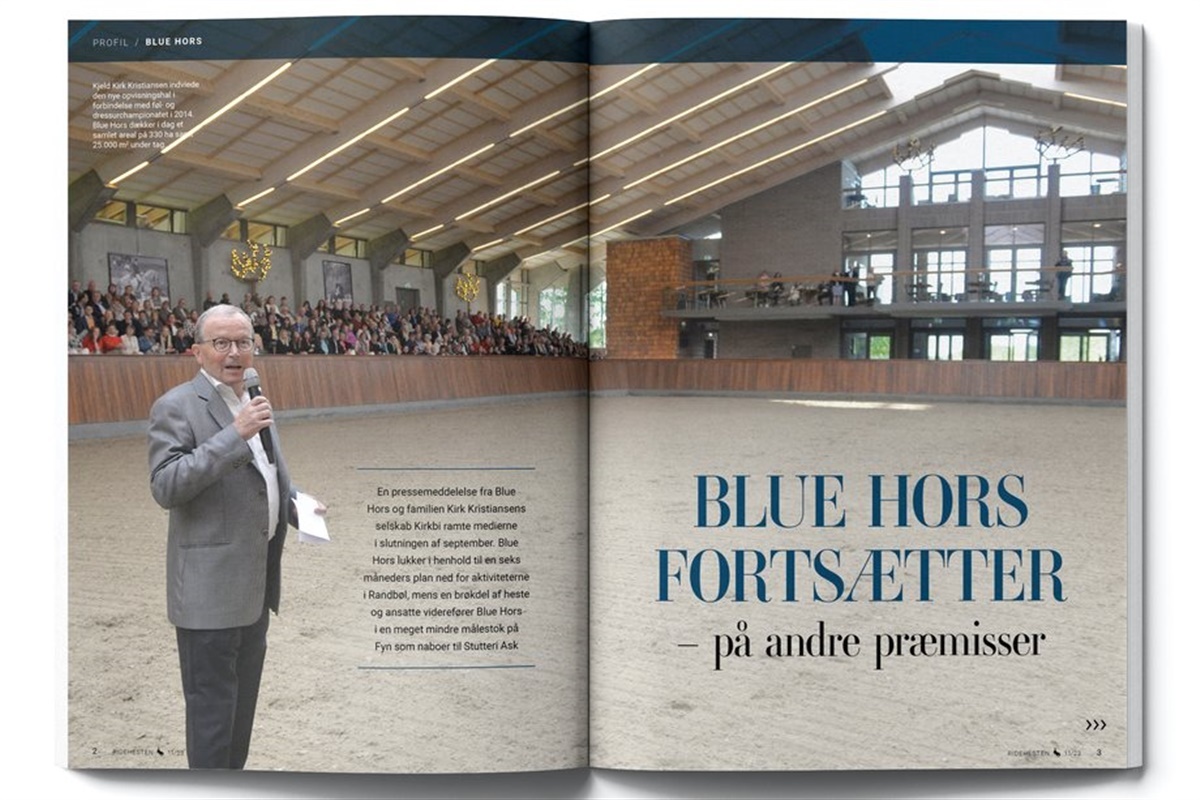 Noget af det, der selvfølgelig også fylder i det nye magasin, er Blue Hors. For i en pressemeddelelse blev det nemlig i slutningen af september meldt ud, at Blue Hors i henhold til en seks måneders plan lukker ned for aktiviteterne i Randbøl, mens en brøkdel af heste og ansatte viderefører Blue Hors i en meget mindre målestok på Fyn som naboer til Stutteri Ask.