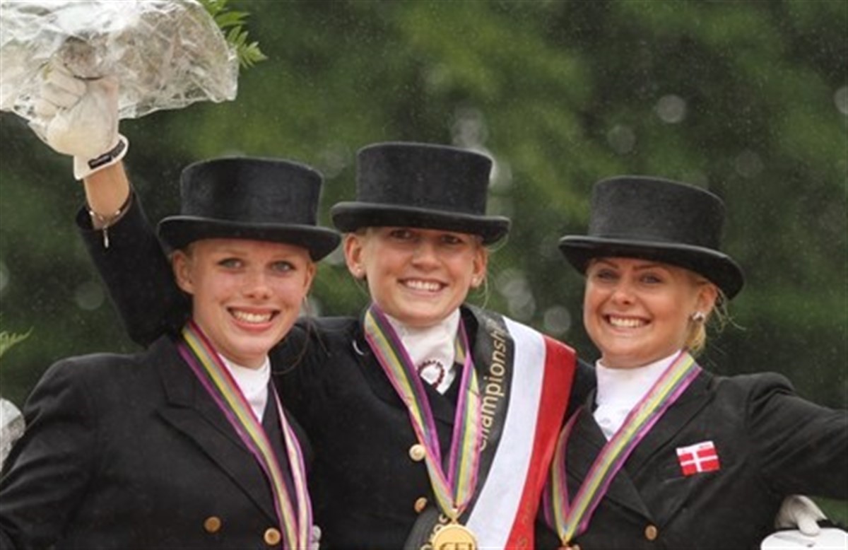 Der var ros til arrangørerne JBK Horse Shows og stævnepladsen på Broholm, de mange hjælpsomme og glade hjælpere, fra FEI's præsident HRH prinsesse Haya. Det europæiske mesterskab kulminerede i dag med individuelle kürfinaler, og som kan kan læse i en anden nyhed her på siden, så fik vi en dansk europamester, da Nanna Merrald og Millibar dansede gennem regnen til den store guldmedalje. I samme klasse vandt Anna Zibrandtsen bronze. I klassen for ungryttere, som afsluttede konkurrencerne på Broholm, satte Rikke Bøllingtoft og Finale konkurrenterne under pres med et flot og fejlfrit kürprogram til 72,950% og det skulle vise sig at række til en 6. plads. De tyske ryttere har været meget sikre under hele stævnet, og i kürfinalen sikrede gårsdagens vinder Sanneke Rothenberger og Deveraux sejren med 76,075% foran sin landsmand Annabel Frenzen med 75,075% Cathrine Dufour var forud for stævnet ikke helt sikker på, at 8-årige Atterupgaards Cassidy var klar til udfordringerne, men medaljen i går overbeviste alle om det modsatte og i dag leverede de et flot kürprogram, dog med et par skønhedsfejl, men dommerne gav parret 73,7% og en bronzemedalje. Carina Nevermann Torup var meget tæt på at dele podiepladsen med Dufour, da hun og Blue Boy opnåede 73,6%