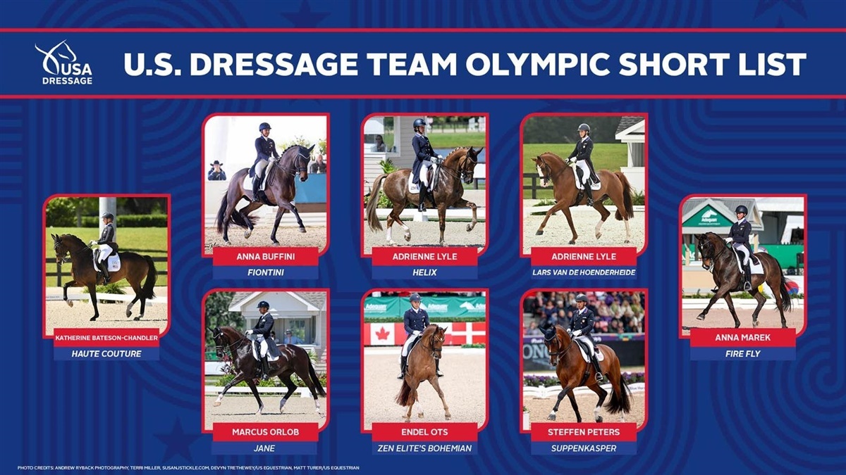 Følgende atleter og heste er blevet udvalgt til US Dressage Team Olympic Short List og er opført i alfabetisk rækkefølge: