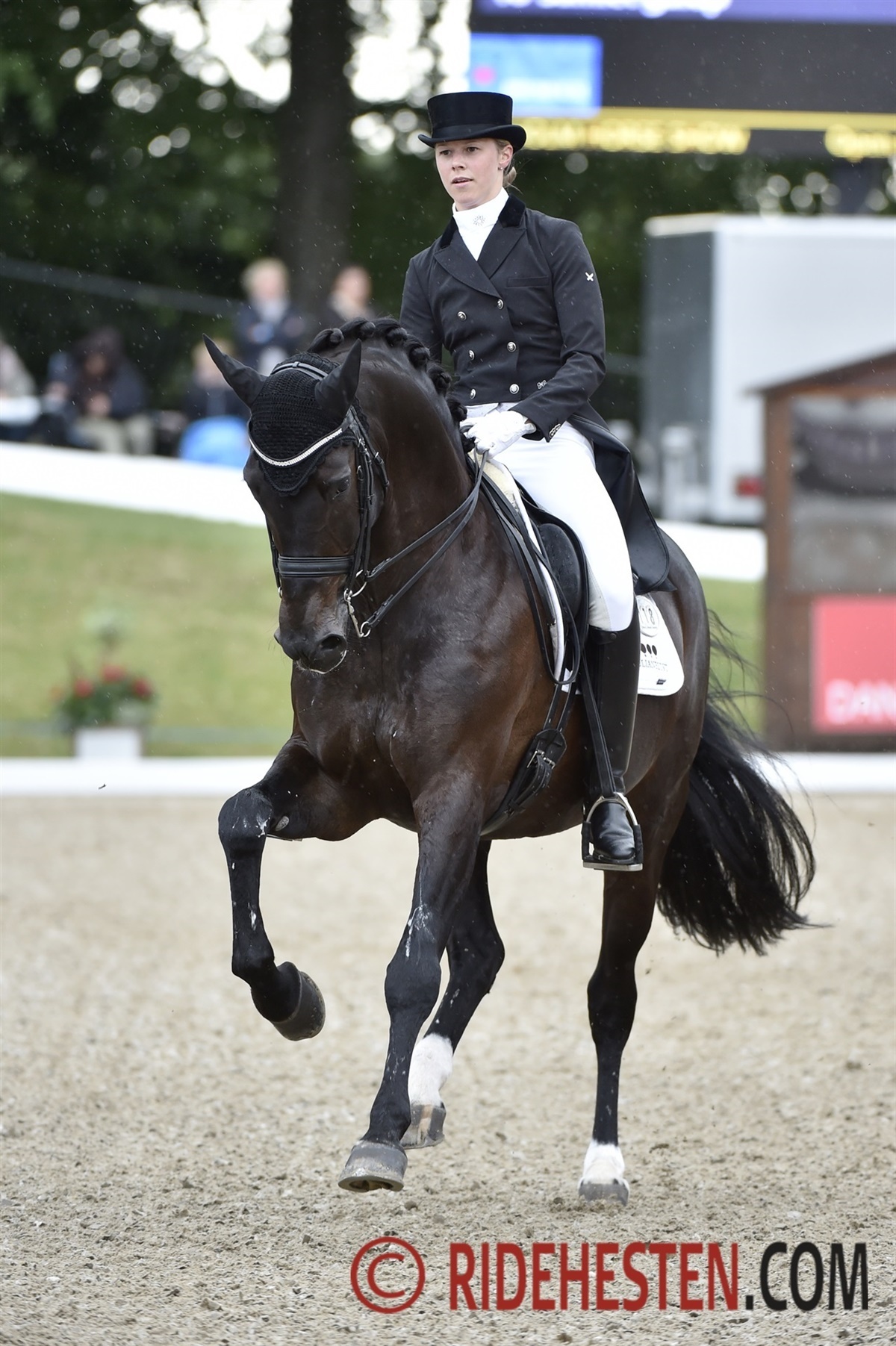 Den regende mester Anna Kasprzak startede som nr. fem i klassen på Donperignon, som virkede herlig afspændt og gik med dejlig energi og overskud. Et fuldstændigt fejlfrit program vurderet til 76,74% af dommene, sendte hende i front i mesterskabet. Den position holdt hun sikkert, indtil Cathrine Dufour red på banen med Atterupgaards Cassidy som dansede elastisk gennem travprogrammet, og alligevel skridtede afspændt og energisk til karakteren 8-9 fra det, udelukkende danske, sommerpanel. En flot afslutningsparade satte punktum for et sikkert og seværdigt program, der blev vurderet til 76,8%