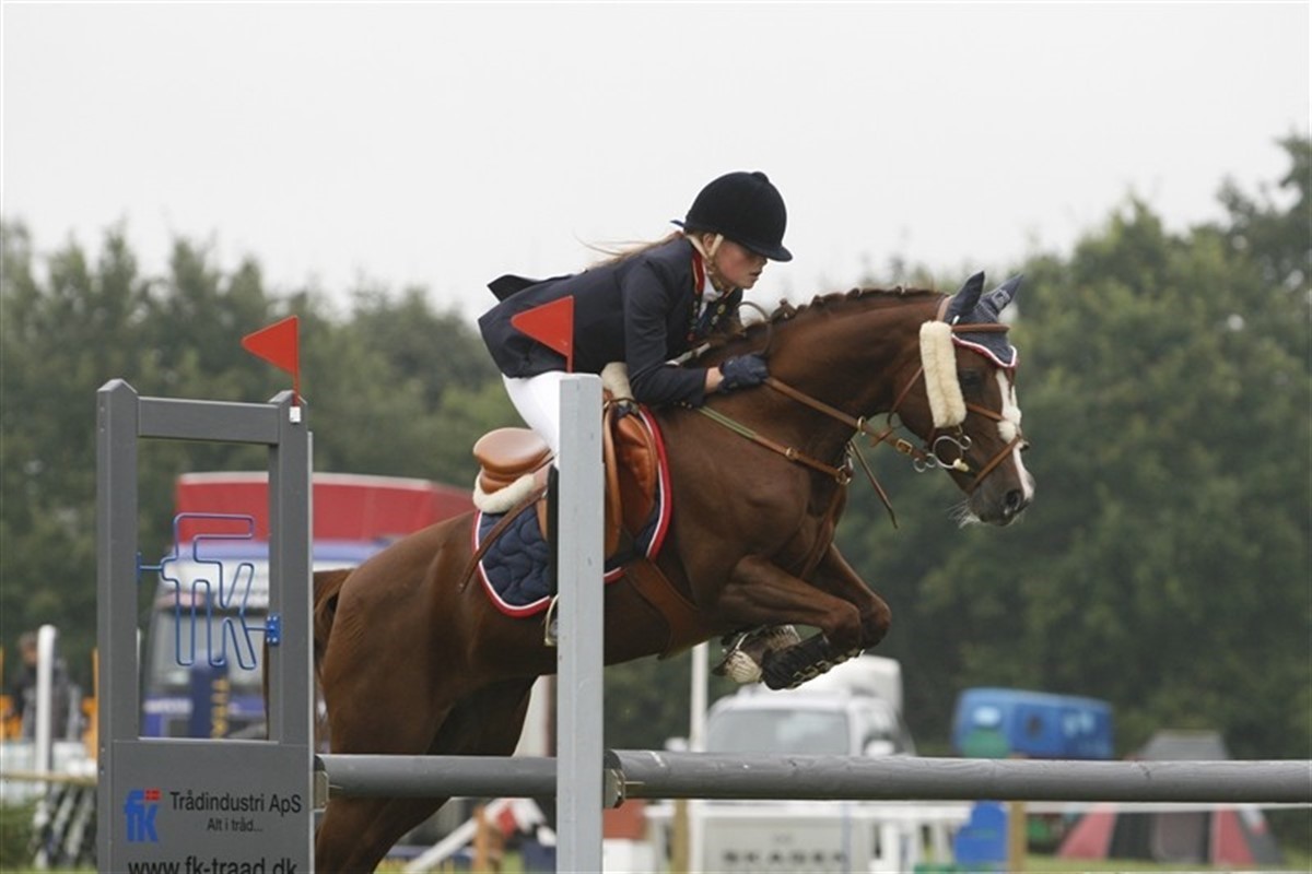 Dina Bach Sigmundsen og Søndergårdens Gonzo blev efter en meget spændende omspringning vinder af Sydjysk Mesterskab i springning for kat. 2 i Guldager Rideklub. Dinas egen pony Night-Girl fik desværre en bom i første runde, så da Gonzo var fejlfri, blev det ham, som skulle kæmpe om sejren, og dette bar frugt. Kat. 3 blev vundet af Mona Holm på Fokus, og hun var meget flot den eneste rytter med hele tre nulrunder. Kat. 1 blev vundet af Natascha Smidt Bill på Bonte Bart. Det er Nataschas sidste år som ponyrytter. Har du en nyhed, der fortjener at komme på Ridehesten.com? Så tip den til os!