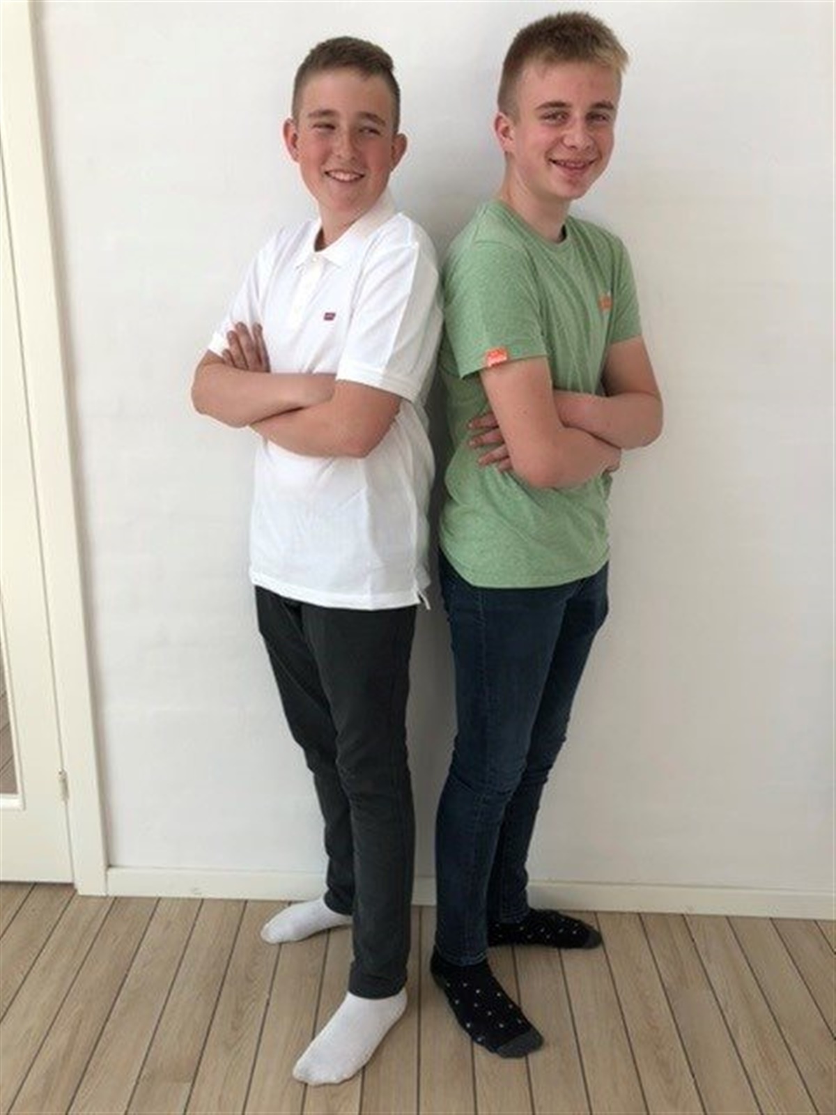 Begge drenge går i samme klasse og skal konfirmeres sammen om få uger. OG til september starter de DM i dressur for ponyhold på deres egne dressurponyer.