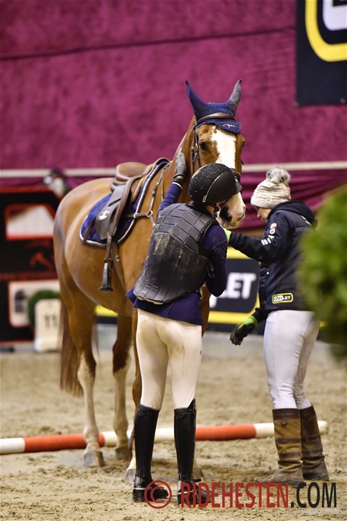 Caroline Rehoff Pedersen styrtede med sin hest Carolus Magnus e. Continue/ Lord Kemm til lørdagens AB RIDEUDSTYR Guld kval MB1* (125 cm). På trods af det ærgerlige styrt kom både to- og firbenede heldigvis begge hurtigt på benene igen. Et kort øjeblik virkede hesten meget chokeret over, hvad der lige var sket. Men Caroline Rehoff Pedersen var så kærlig og omsorgsfuld overfor hesten efter faldet, og den fik både kys og kram.