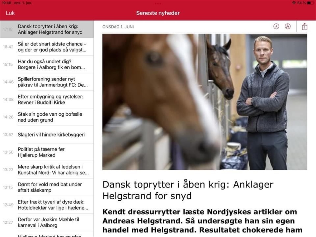 Jeg har netop læst artiklen i Nordjyske ”Dansk toprytter i åben krig: Anklager Helgstrand for snyd”.