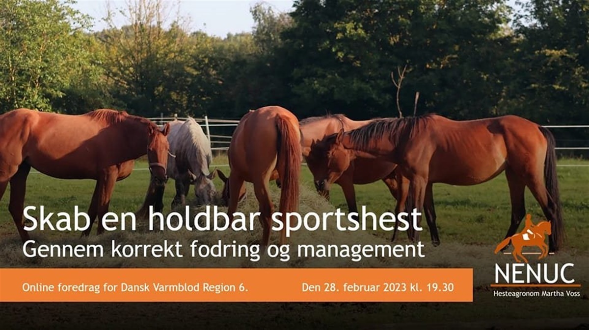 Dansk Varmblods region 6's online foredrag om fodring af føl og ungheste ved hesteagronom Martha Voss den 28. februar kl. 19.30 er åbent for alle interesserede.