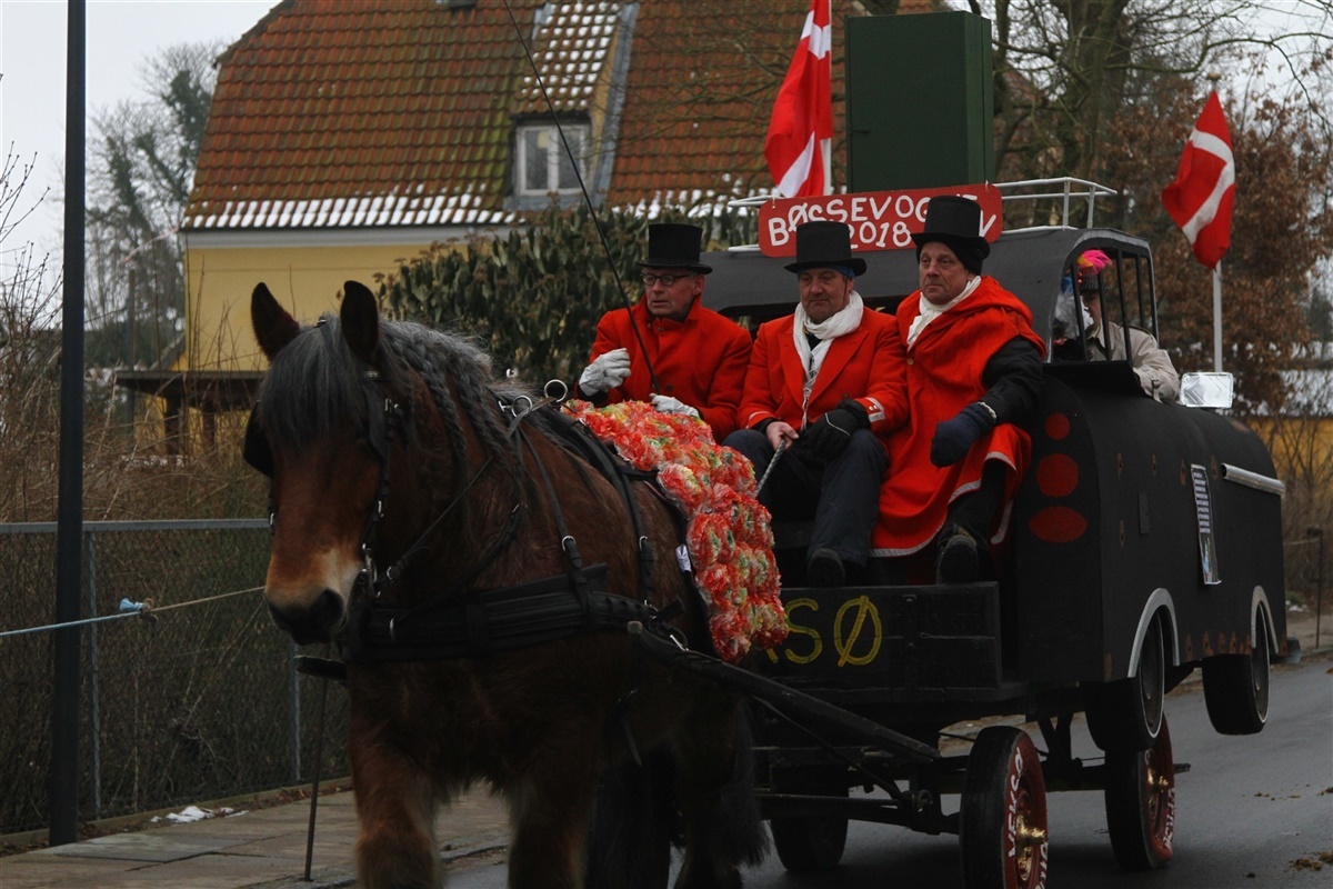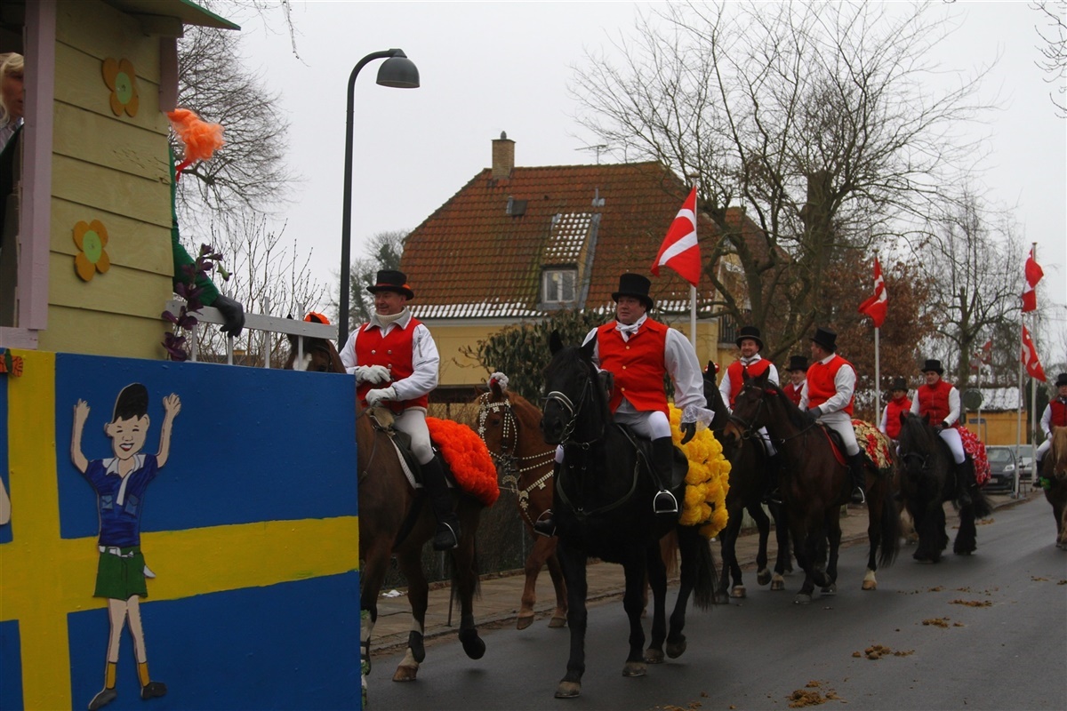 I 108 år har fastelavnsklubben i Veksø på Sjælland eksisteret. Derfor mødtes 14 ryttere og 5 vogne i fuld udklædning i morges for at ride i optog til gårde og rundt til alle byens grundejerforeninger. Turen ender i eftermiddag på hovedgaden i Veksø, hvor rytterne klokken 15.30 slår katten af tønden til hest.