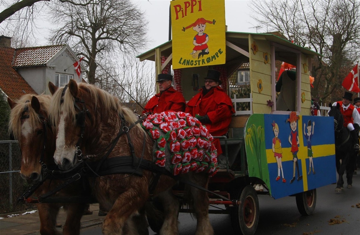 - Det foregår i vognen, klovnevognen. Den har efterhånden udviklet sig til at være optogets overraskelse, idet vognen bygges op omkring en begivenhed fra det forgangne år, og hvad den forestiller, afsløres først fastelavns søndag.