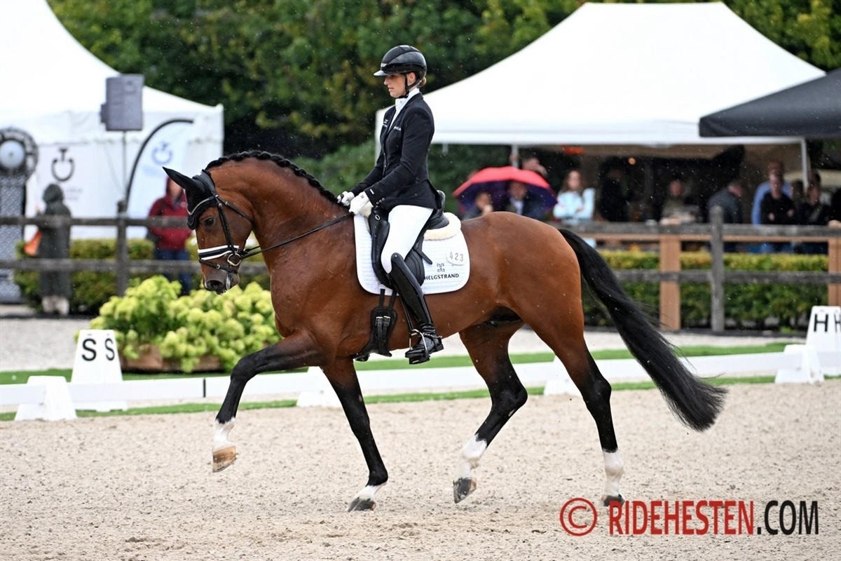 Helgstrands dygtige berider, 34-årige Mette Sejbjerg Jensen, der snart skal vise 5-års hingsten About You II i UVM-finalen, gentog sejren i 4-års finalen fra den indledende klasse, hvor Opoque e. All At Once/ Davino V.O.D. var overlegen.