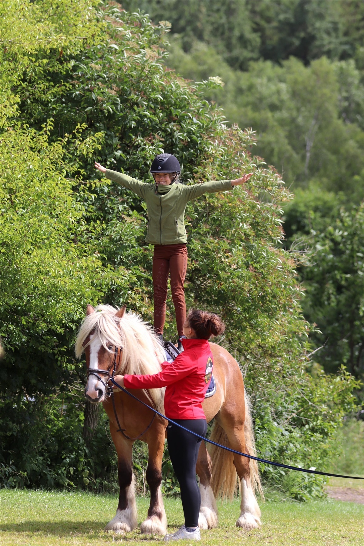 Trine og Caroline Amalie har netop afsluttet tre ugers intensiv ridelejr, hvor deres sted har været spækket med glade, hestetossede børn og unge fra uge 27 til og med uge 29. Her har børnene, foruden sjove hesteaktiviteter, sovet i indianer-tipi, der rummer plads til alle ridelejrens deltagere: – At overnatte på denne måde, giver virkelig en god stemning og et godt sammenhold. Alle samles hver aften til sengetid, så det skaber et rigtig godt fællesskab, fortæller Trine og Caroline Amalie.
