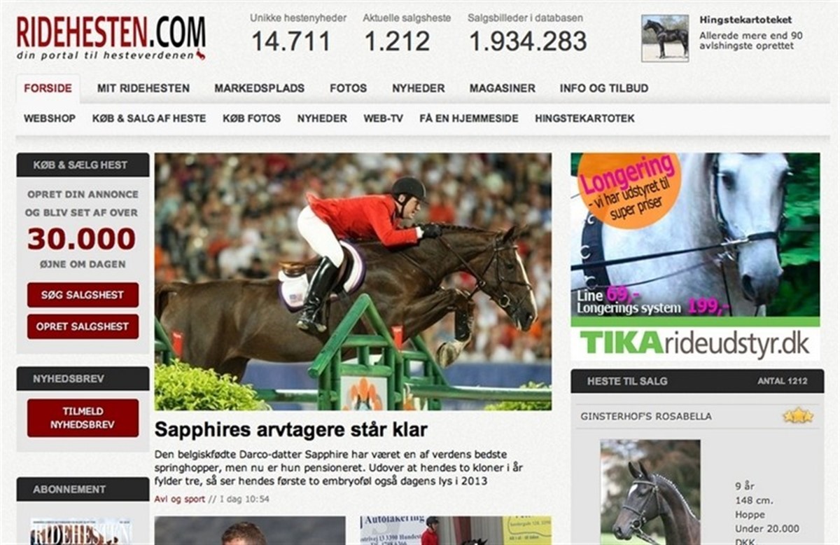 Hver dag besøger over 17.000 Ridehesten.com, og det bevidner endnu en fremgang i det støt stigende antal af besøgende. Sitets nyhedsformidling er det bærende element, og det er udvidet til også at omfatte flere daglige nyheder på engelsk, hvilket går fint i tråd med den stigende interesse fra udlandet i sidens køb og salg af heste. Ridehesten.coms fotodatabase med knap to millioner salgsbilleder er også med til at øge trafikken. I alt har det altså resulteret i over en halv million besøgende på Ridehesten.com om måneden.