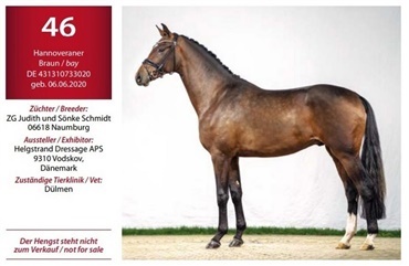 DJ er en af tre 4-årige helsøskende, der er lavet på embryo transfer og alle udbydes på auktionen. Han er ung hest i stor udvikling og er et lovende emne til den rytter, der kan og vil uddanne sin fremtidige dressurhest. Begge forældre, UNO Don Diego og Søbakkehus Kamilja, går S-dressur i udlandet, lige som morfaderen, guldmedaljehingsten Milan, har gået international Grand Prix. Moren er elitehoppe og ligeledes mor til guldmedaljehingsten Hesselhøj Donkey Boy, der er efter UNO Don Diego-sønnen ERA Dancing Hit og altså meget nært beslægtet med Hesselhøj DJ. Blandt et utal af meget succesfulde sportsheste fra denne hoppestamme er OL-dressurhesten Lucky Star samt den tidligere danmarksmester i dressur Fitou L.