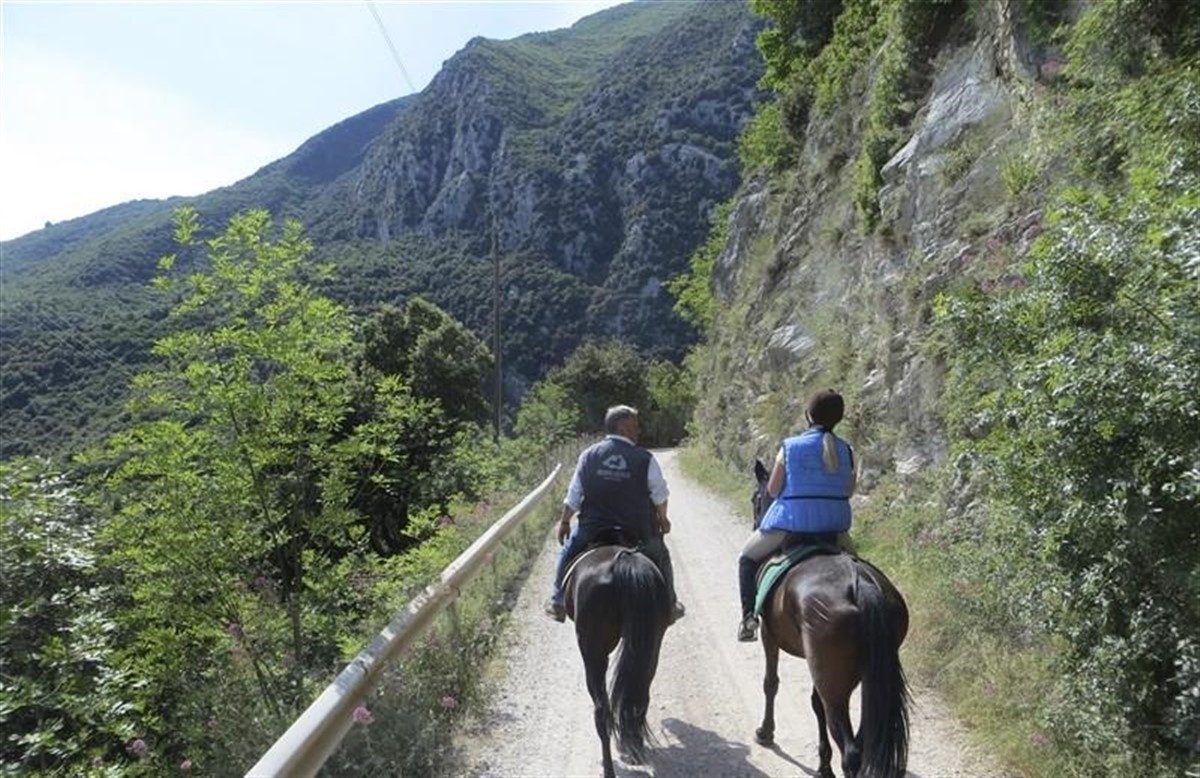 - Giovanni tager os med op i bjergene for at få udsigten over denne enestående natur, som ligger rundt om stutteriet. Vi rider op, op, op og hestene er virkelig kommet på arbejde, men de går og går som om de aldrig har gjort andet. Skulle man vandre eller cykle her, som selvfølgelig er muligt, havde det krævet noget helt andet, og jeg ville på ingen måde have haft overskud til at nyde naturen. Og den skal i den grad nydes, for hvor er her smukt.