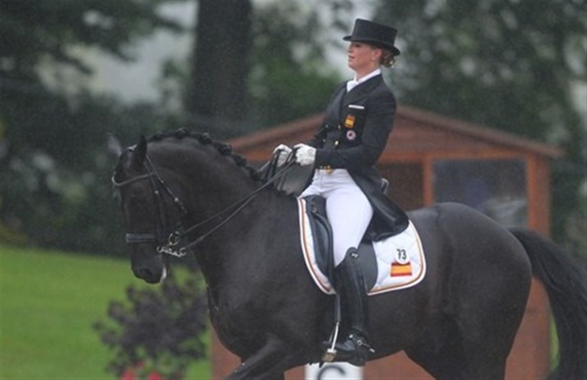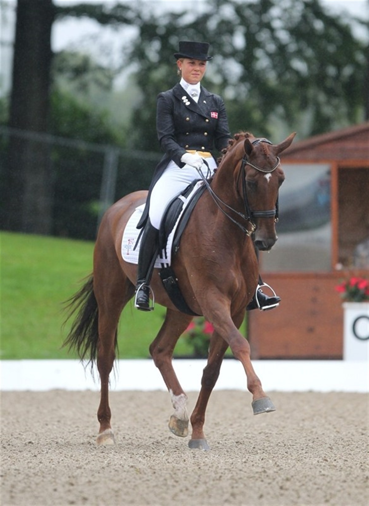 Syv ryttere, heraf fire danske, mødtes her til aften på Broholm i Intermediaire II for ryttere under 25 år. Det blev til en sikker sejr til den spanske rytterske Morgan Barbancon, der rider Gribaldi-sønnen IPS Painted Black, der tidligere er redet af den hollandske toprytter Anky van Grunsven. Det var bestemt ikke et fejlfrit program den unge spanier viste, men hingstens erfaring har naturligvis stor betydning i piaffe/passage øvelserne, der var flere af rytternes akilleshæl. Hun scorede 69,123%, og dermed tog hun sejren i bekvem afstand til tyske Jill de Ridder og Wellington e. Wanderer, der scorede 66,711% på baggrund af et sikkert program. Det lykkedes ikke for danskerne at kile sig ind i placeringsrækken, tættest på var Anna Kasprzak og sølvmedaljehoppen Langkjærgaards Donna Fetti e. Blue Hors Don Schufro med 66,395% på tredjepladsen. Den elegante hoppe debuterede i Intermediaire II ved landsstævnet i Kolding i foråret og i sidste uge gik hun ind på andenpladsen i Intermediairen i Aachen. I dag opnåede de 66,395% efter et program, hvor hoppen viste en stor og rytmisk skridt, flotte 2'er changementer og sidebevægelser. Hun mangler endnu lidt styrke til at vise piaffe og passage øvelserne til høje points, men i dag viste hun, at hun har anlæg for dressurens vanskeligste øvelser. I morgen lørdag skal rytterne ride U25 Grand Prix.