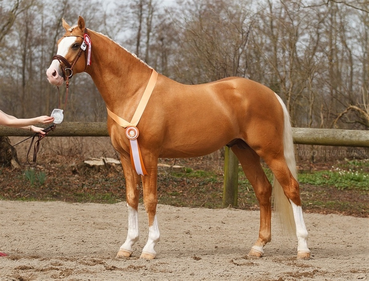 - Formålet med denne kombination var at lave en palominofarvet dressurhingst i varmblodsformat og med en vis araberandel til forædling, fortæller Juliette de Richelieu og tilføjer, at hingsten har en araberandel på knap 30%.