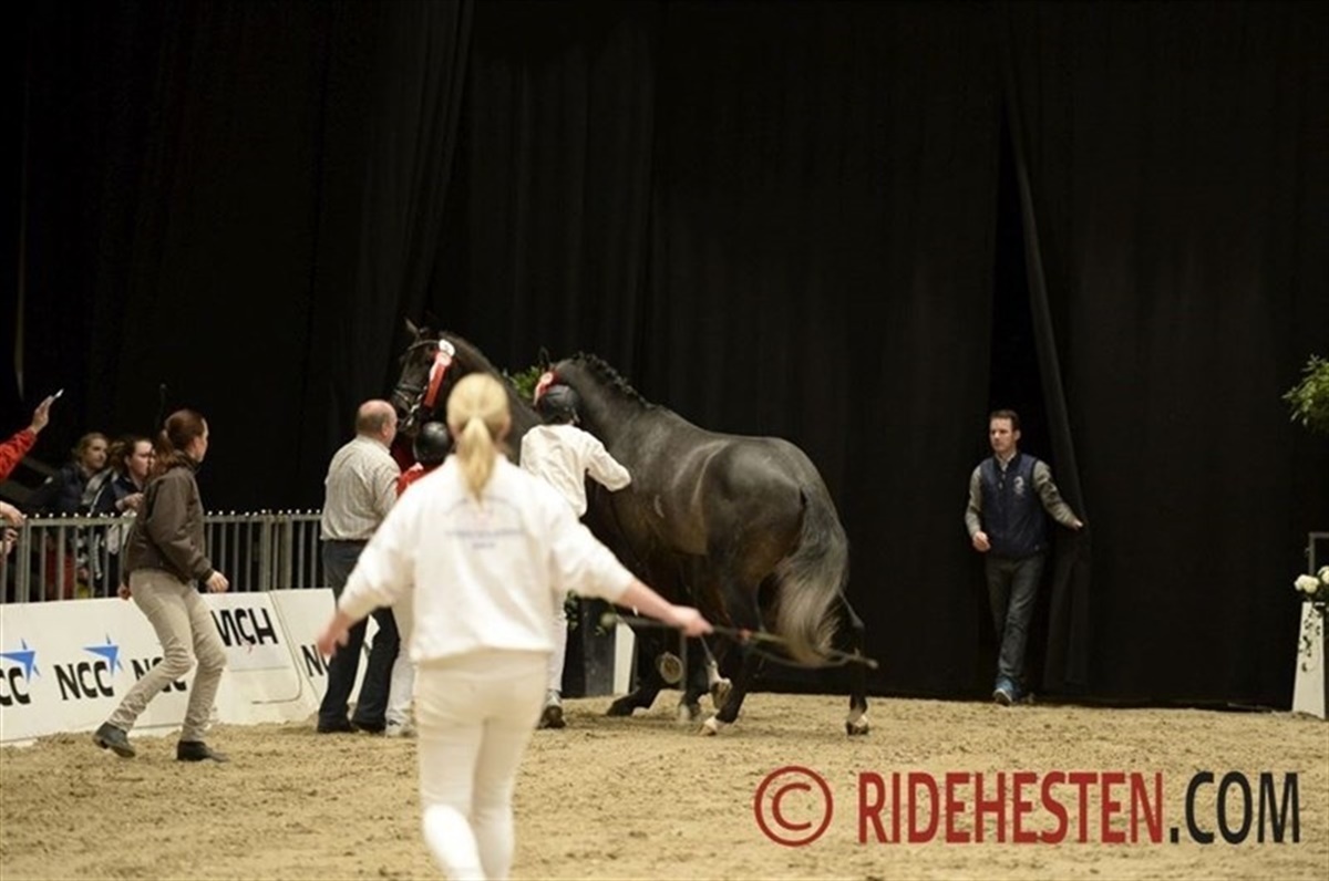 De øvrige hingste blev hurtigt ført ud af banen, og de erfarne hjælpere og mønstrere fik hurtigt skilt hingstene ad og skabt ro på fremvisningen. Derefter kunne hingstene fortsætte skridtgangen på ring.