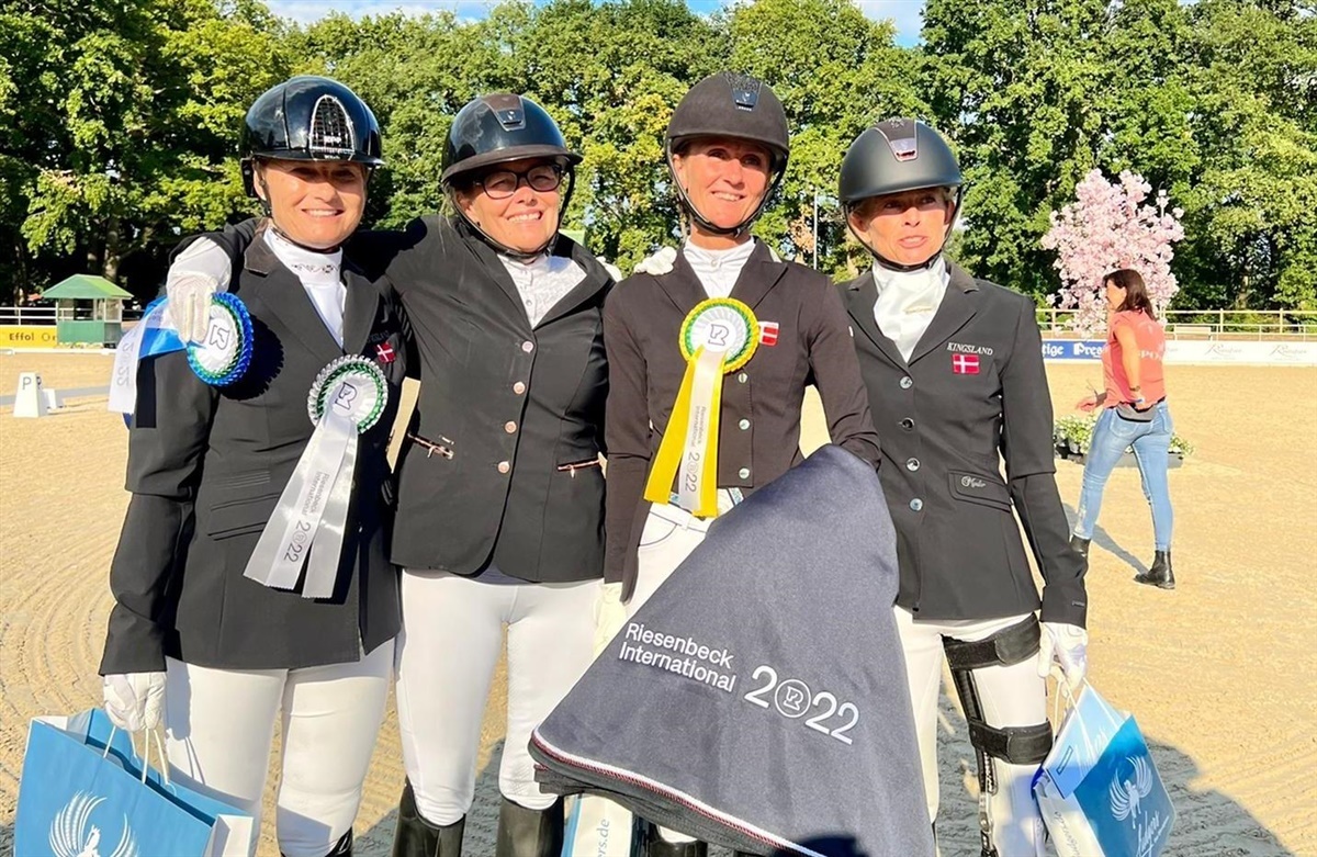 De danske paradressurryttere er kørt til Riesenbeck i Tyskland, hvor de rider et internationalt paradressurstævne. Rytterne er kommet rigtig godt fra start, og i går blev det både til en sejr, og flere øvrige placeringer.
