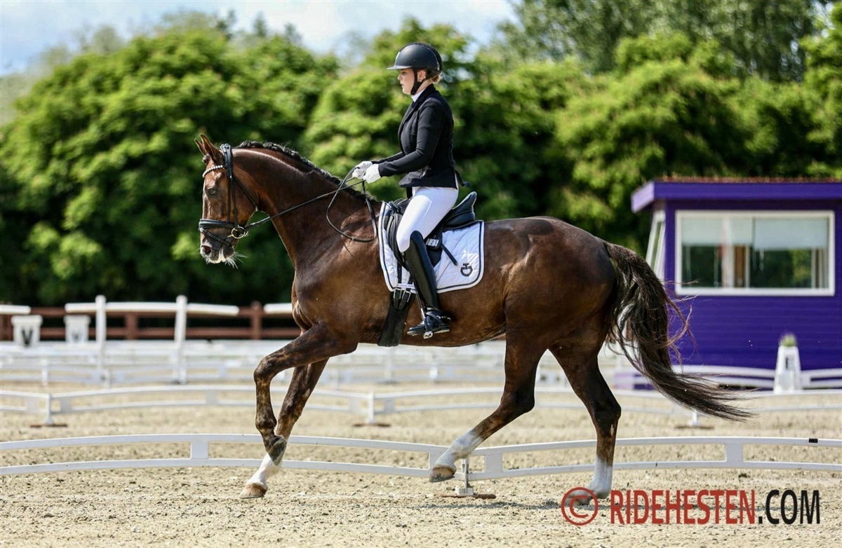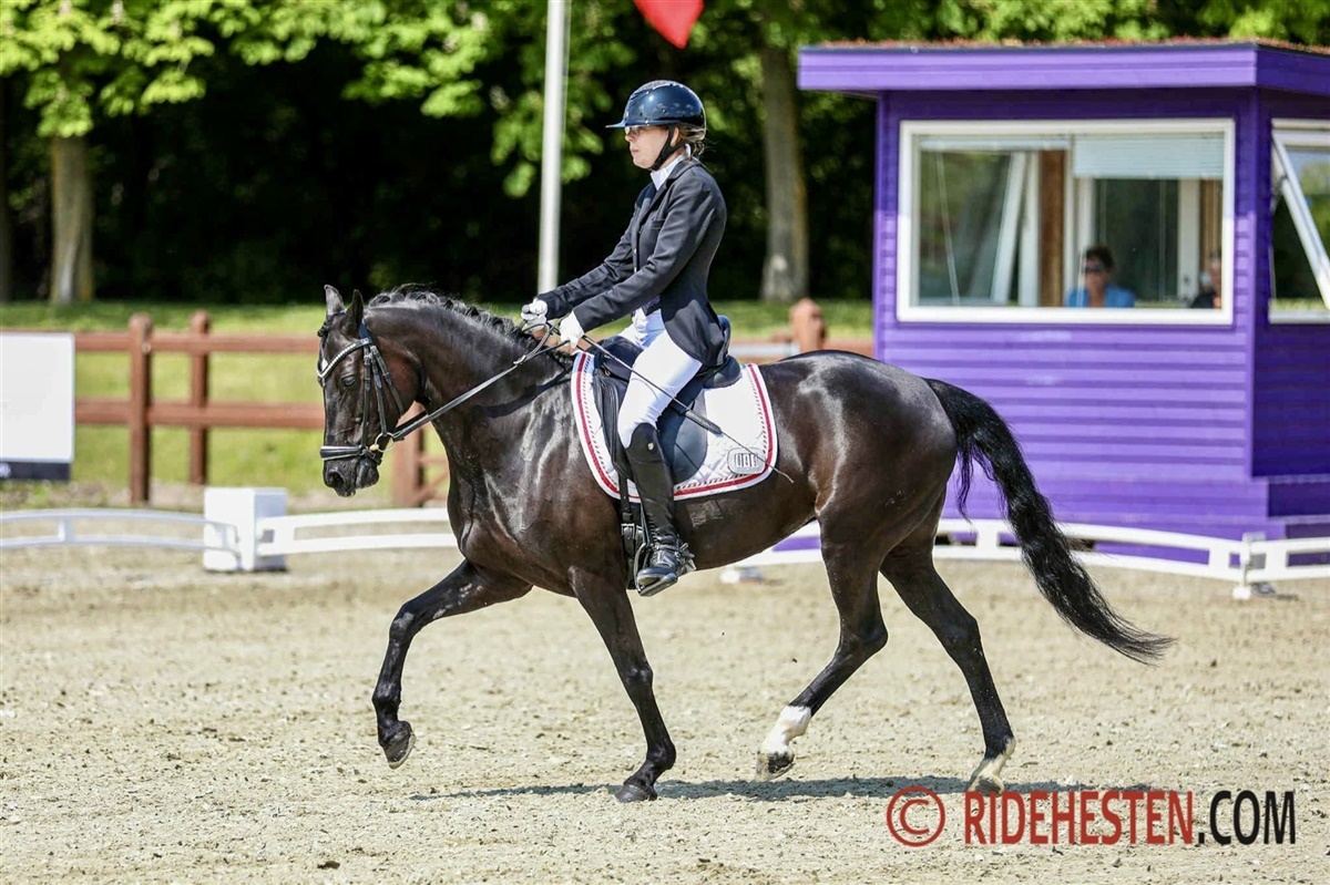 I dag var det Frida Langer Brøggler i sadlen på den 9-årige Goerklintgaards Salty Sea e. Gørklintgårds Santos/ Sir Donnerhall I, der lagde sig i spidsen af mesterskabet. Hun blev af de tre dommere blev belønnet med 71,171% for sit program. Frida rider i grad grad fem, og går til finalen med det bedste udgangspunkt.